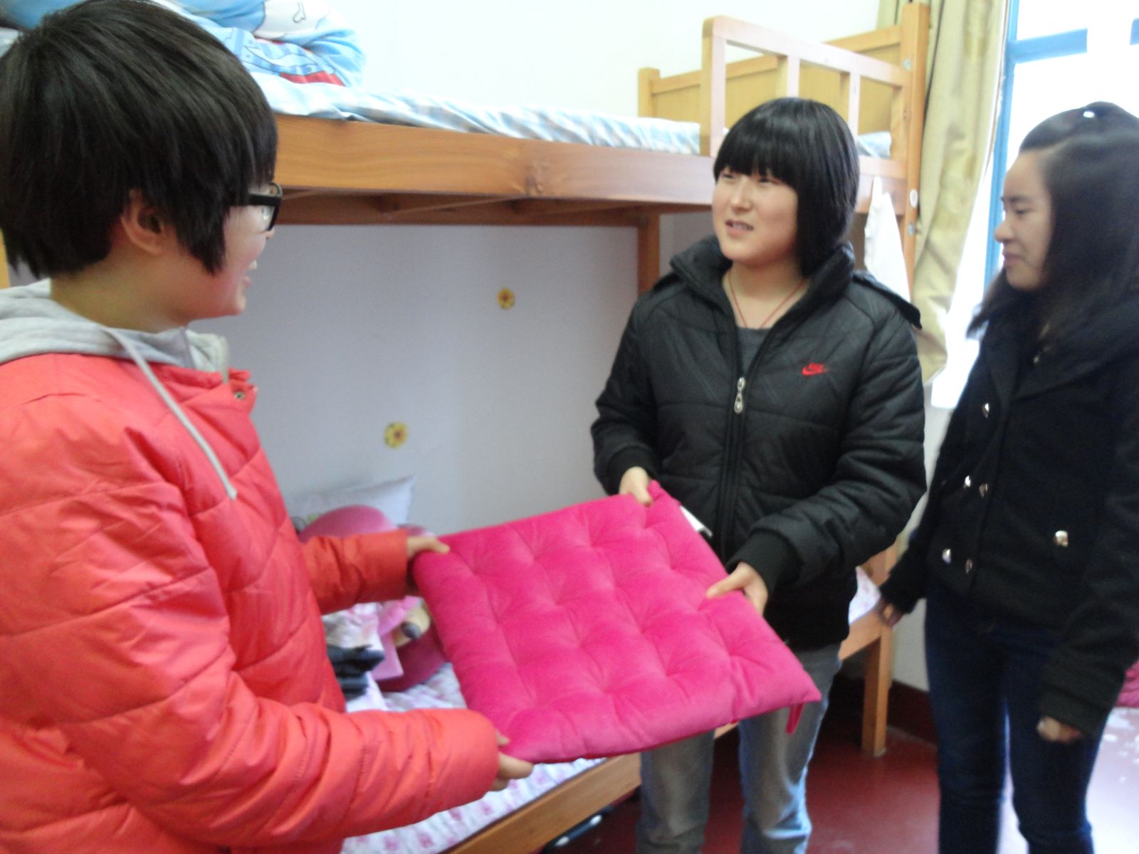 老师们和学生干部一行人前往学生寝室,将系部准备的慰问品送到献血同学们的手上,希望能在渐冷的冬季,给他们送去温暖。同时,老师在和同学们的交流中,详细了解了他们献血后的休息和身体情况,提醒他们注意饮食与休息,同学们回想起献血当天的情形,仍然表示很激动,献血让他们感到光荣。