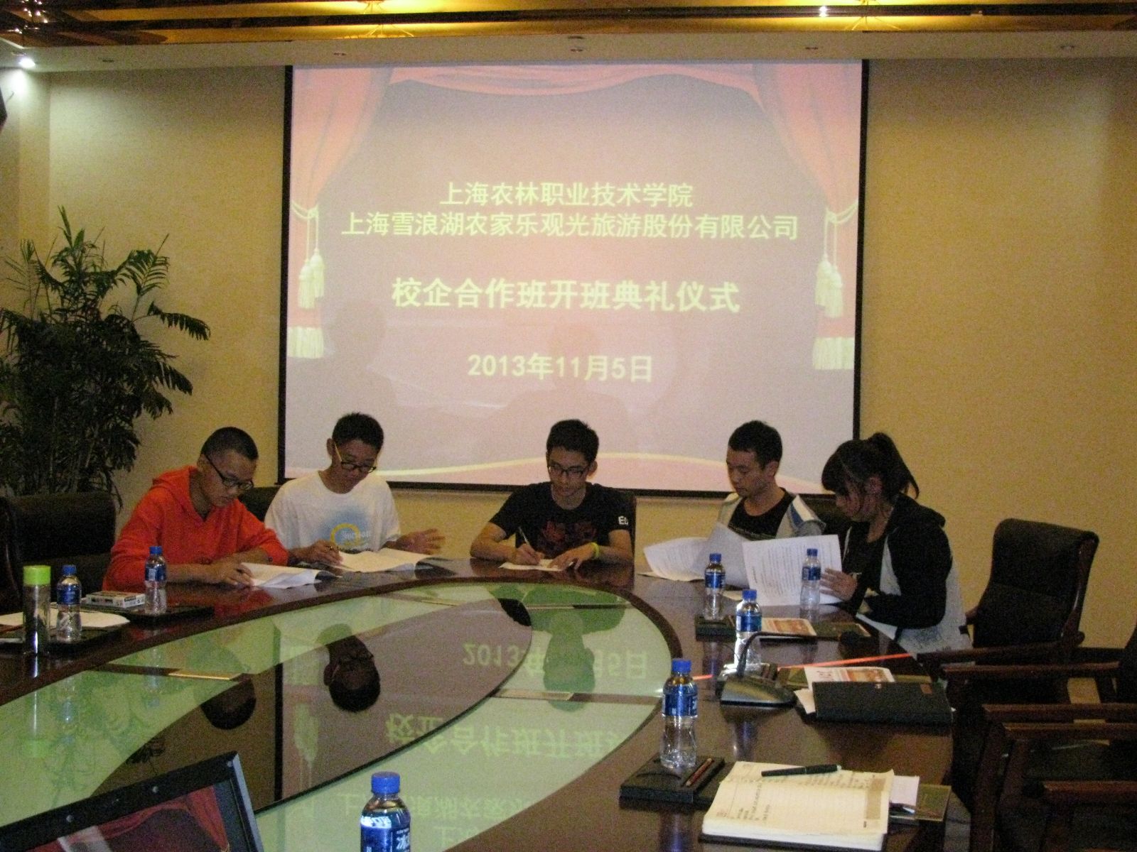 由上海雪浪湖度假村的马经理带领学生参观,并进行详细讲解公司的概况和文化底蕴。参观后我校学生与“上海之根”雪浪湖进行了“教育培养协议书”的签约仪式,会上由系主任高萍老师对本次签约的观光131班学生提出了5点要求:
