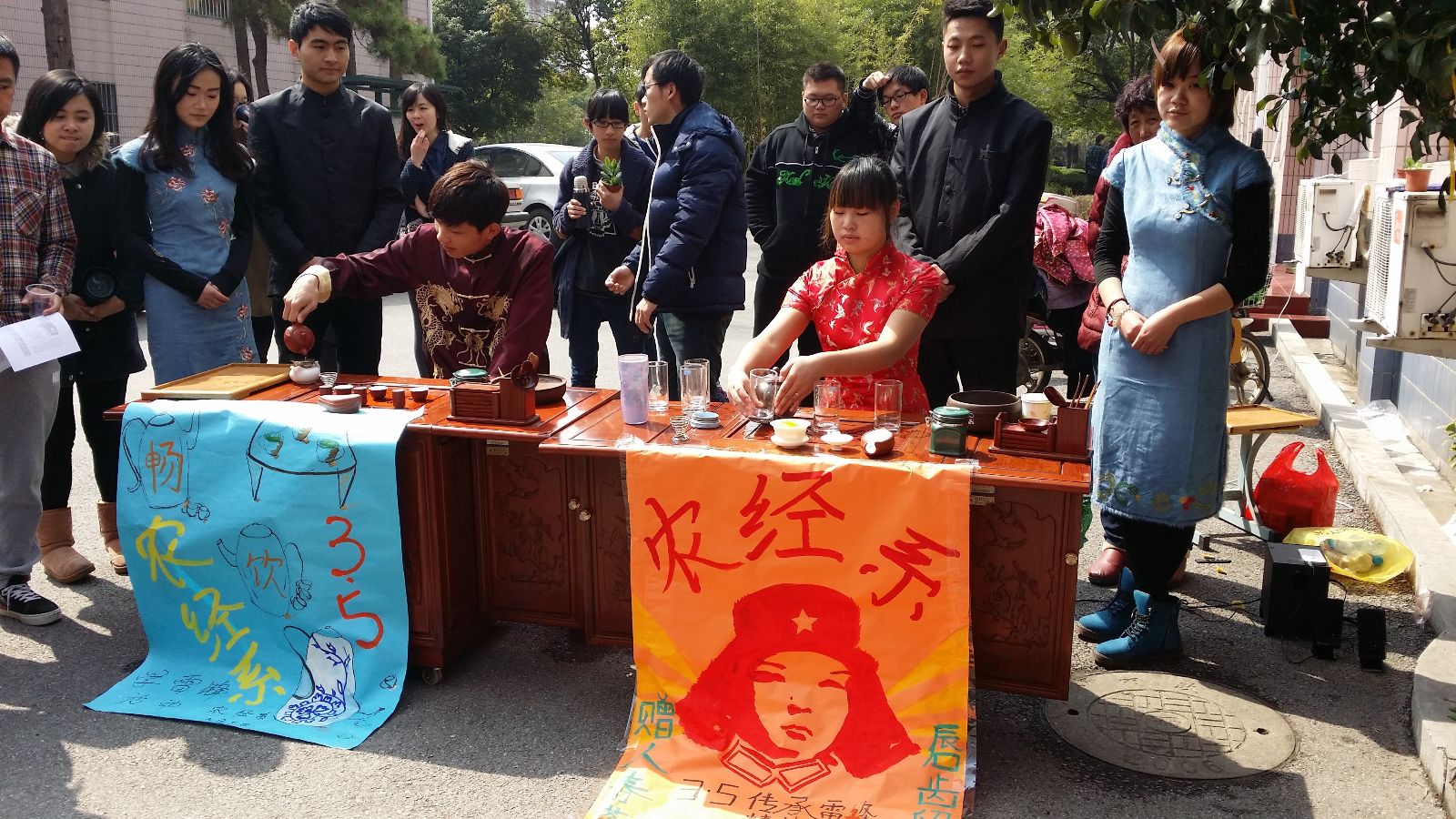 3月5日中午,为传承雷锋精神,农业经济管理系学生会志愿者部与社联部共同在学生食堂门口组织了品茶活动。