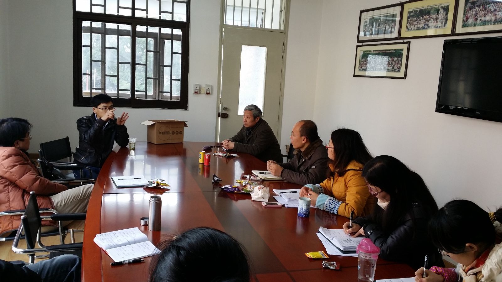 2月21日下午,农业经济管理系乐实农产品销售公司全体成员在农经楼会议室,接待了59food公司的业务经理,对公司今后的运作展开了激烈的讨论。
