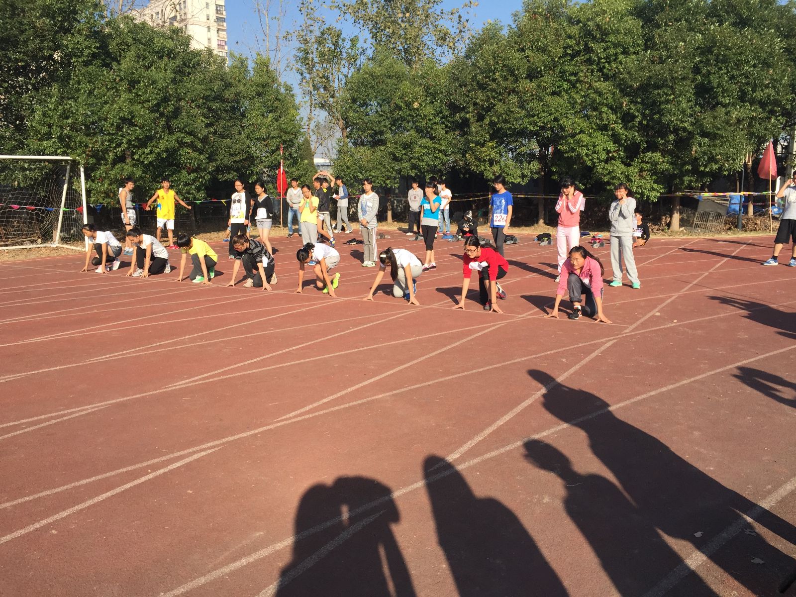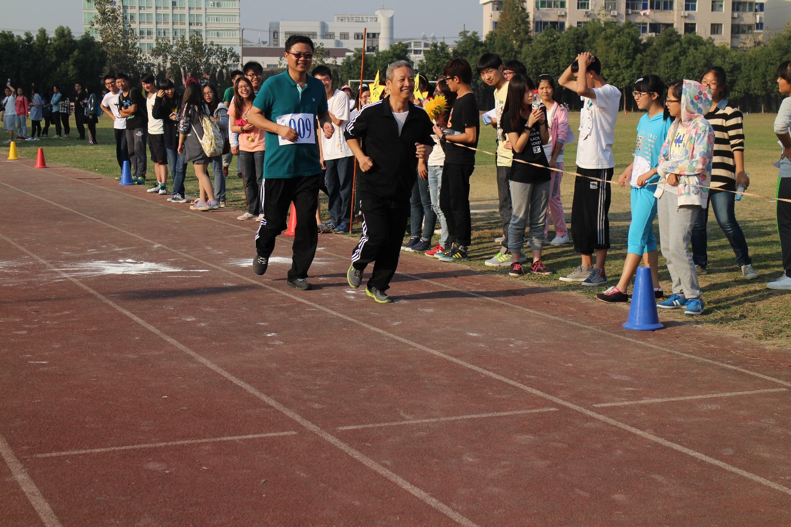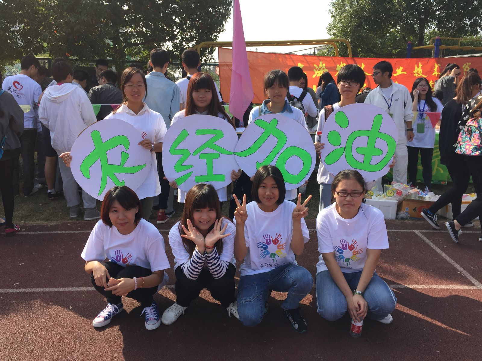 在运动会上,运动员们在操场上挥洒了汗水,奋力拼搏,为那一份荣耀而努力;系部的啦啦队在操场上身穿新定制的志愿者服装,用手中的加油牌,为运动员们加油助威;在操场的一角——系部大本营内,工作人员们为运动员们提供着优良的后勤服务,为运动员们增添能量。