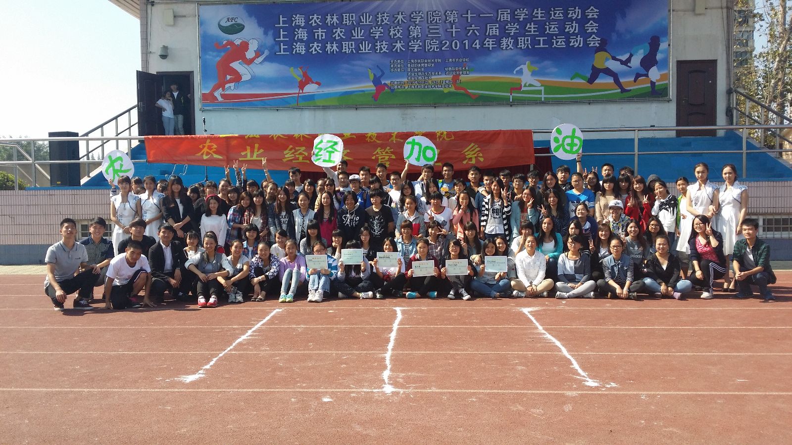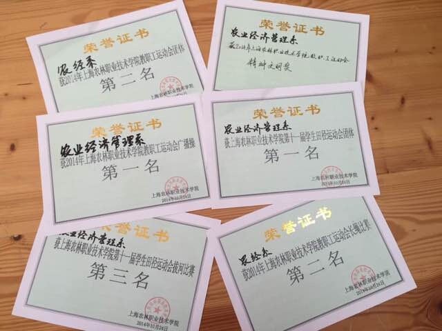 10月23日至24日,上海农林职业技术学院在操场举行了第十一届学生田径运动会和2014年教职工运动会。农业经济管理系在本次运动会上荣获学生团体总分第一名,实现了历史性突破,以及教职工团体总分第二名、精神文明奖、长绳比赛第二名等。