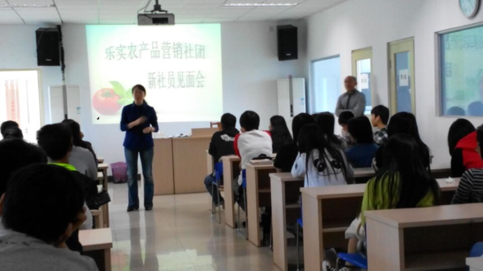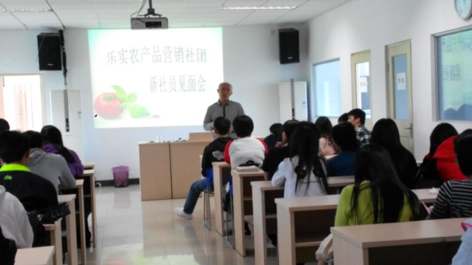 10月28日,农经系学生社团--乐实农产品营销社在文科楼导模室召开新社员见面会,58名新老社员及三位社团指导教师参加会议。会议由社团指导老师吴瑞琴主持。
