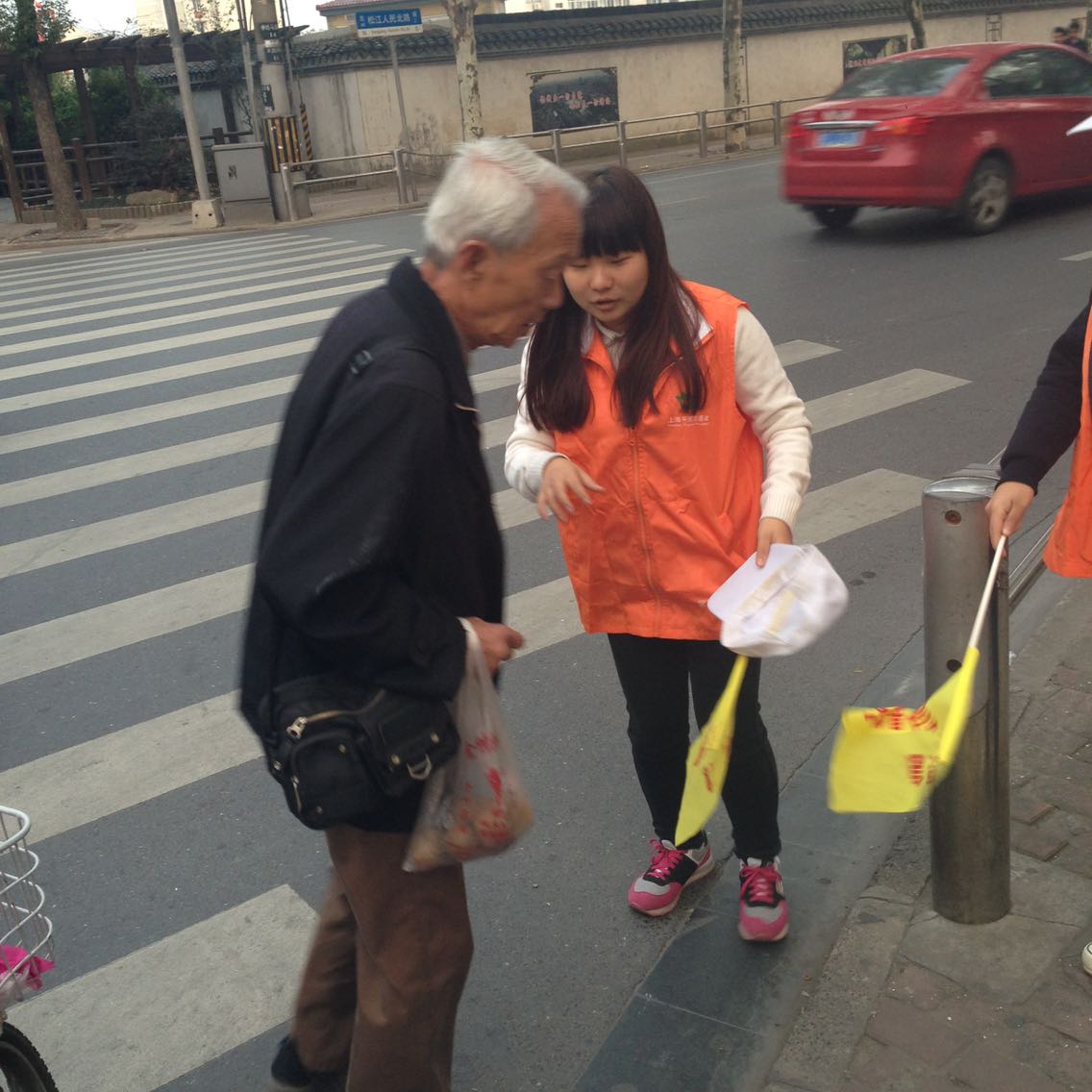 服务现场,来自松江分局交警队的王警官首先为志愿者们讲解了有关交通法规的知识与注意事项。然后志愿者一共分成4个小组,2个人为一个单位分别站在四个不同的路口,积极协助警官指挥交通,帮助提醒疏散路口停留的路人,并宣传安全出行的重要性,志愿者们用心去劝导每一个市民遵守交通规则,让市民对自己的安全负责,看着志愿者每成功劝阻一个闯红灯路人,脸上嘴角上都仰起甜甜的微笑,遇到不停劝阻的路人,志愿者也决不气馁。
