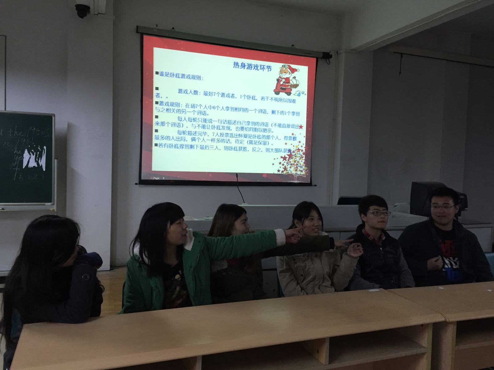 活动开始,主持人与刘凯瑞同学为大家献上“单身情歌”、“夜半小夜曲”将现场气氛带动起来。紧接着开展了一系列如谁是卧底、抢椅子、换名字等小游戏,同学们纷纷积极报名,踊跃参与各个游戏并赢得奖品。小游戏的开展赢得同学们的掌声与欢快的笑声。此次活动联欢活动在一片欢声笑语中落下了帷幕。