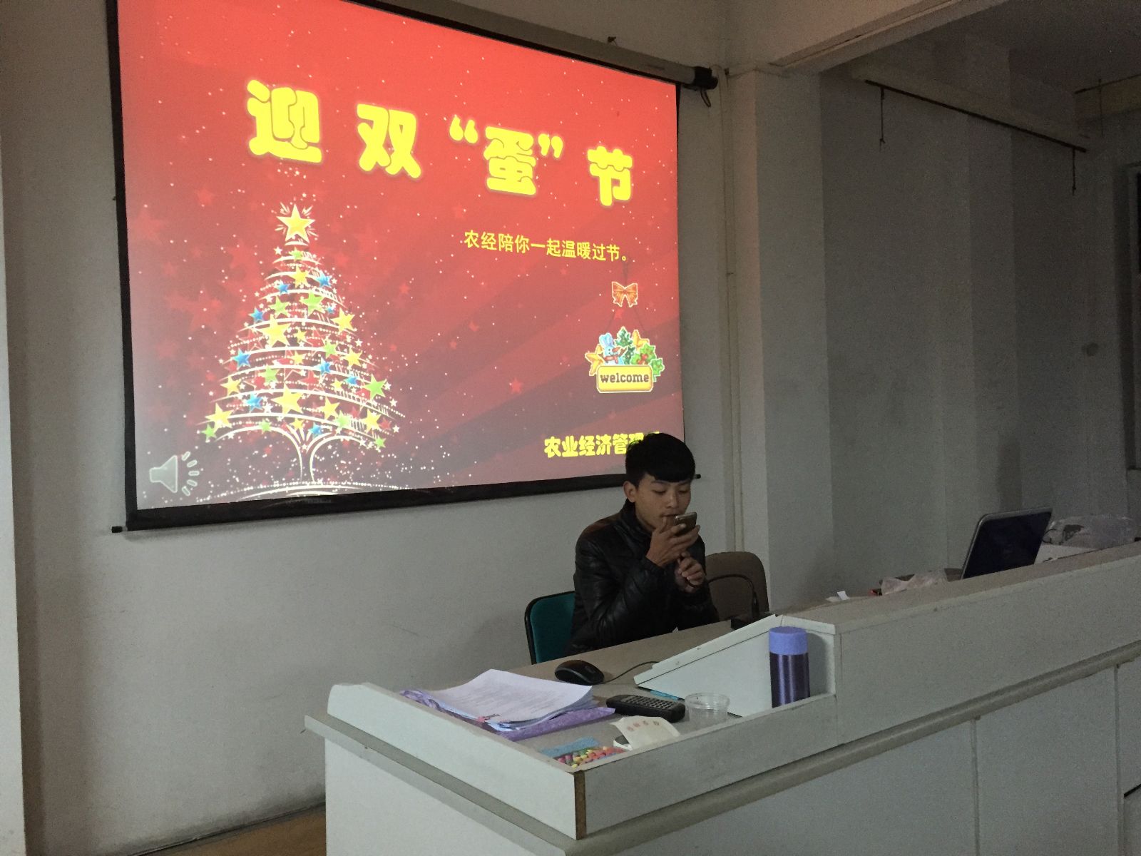 在圣诞节与元旦来临之际,日前,农业经济管理系在一教202开展了“迎双‘蛋’节”联欢活动。农业经济管理系辅导员陆琳、张婧敏参与了这次活动,陪伴来自系部的60多名帮困学生提前度过了一个温馨的双“蛋”节。