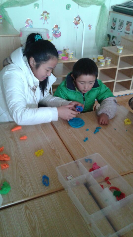 赵老师热情地接待了志愿者并向他们介绍了孩子们的基本情况,据了解这些孩子们大部分因为先天性原因导致了听力或智力等的障碍。随后老师将志愿者们带到教室,刚刚午睡完的小朋友们看到大哥哥大姐姐的到来很是兴奋,乖乖地吃着学校为他们准备的点心,都希望在哥哥姐姐面前表现出最优秀的样子。为了进一步融入到孩子们当中去,志愿者们带着小朋友一起玩起了橡皮泥,发挥着各自的想象力,捏泥人捏各种小动物,小朋友们互相展示着自己的作品,一句“你好棒”能让他们开心好久好久。展示玩作品后,小朋友们乖乖地洗完了手,志愿者们给他们每个人发了小零食,陪他们一起聊天,一起做一些简单的手语,“谢谢”“你好”“我爱你们”一个个简单的手势展示着他们的自信与喜悦,同时也表达着内心无以言表的激动。