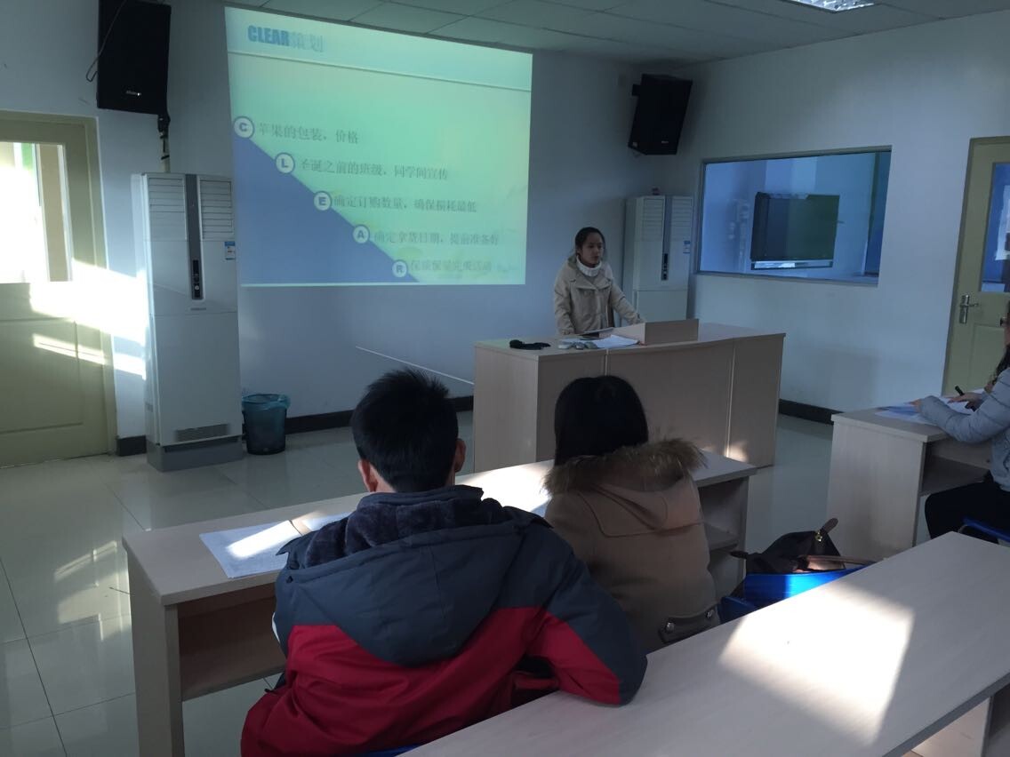 其次,会议进行了社团小组销售竞赛汇报。每个小组由一名代表负责PPT汇报,然后由学生和老师进行提问,根据综合打分,会议选出了此次比赛的一、二、三等奖。最后王海丽老师给参赛小组进行了专业点评。