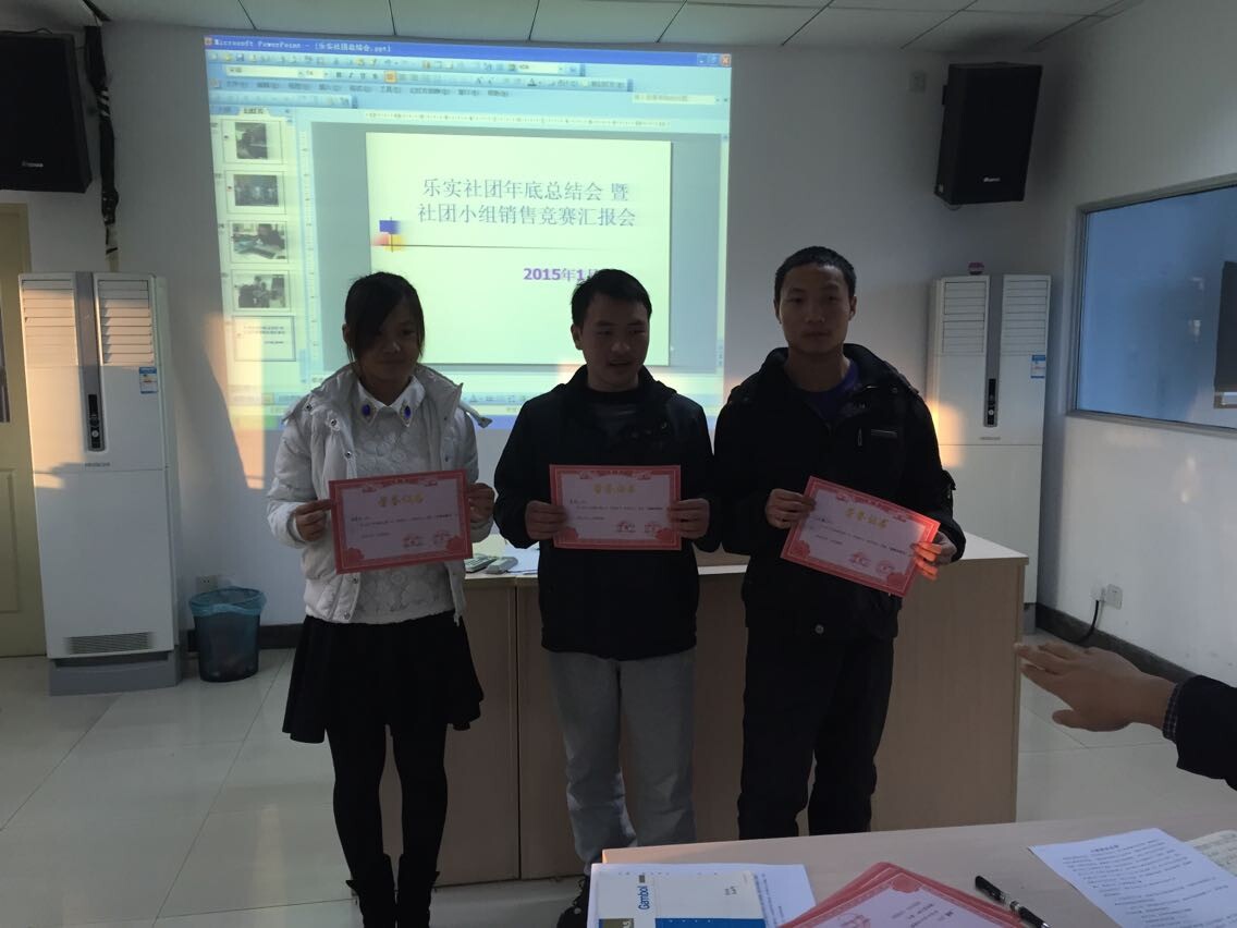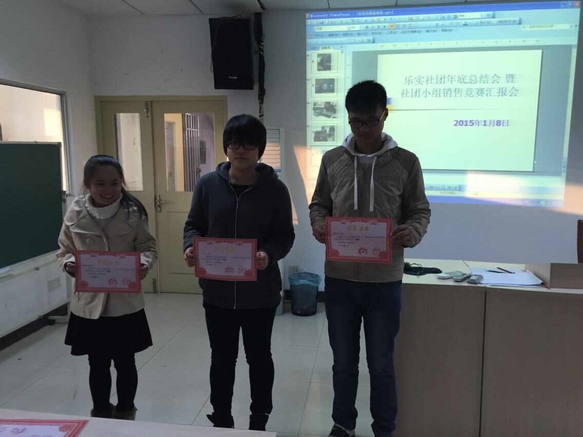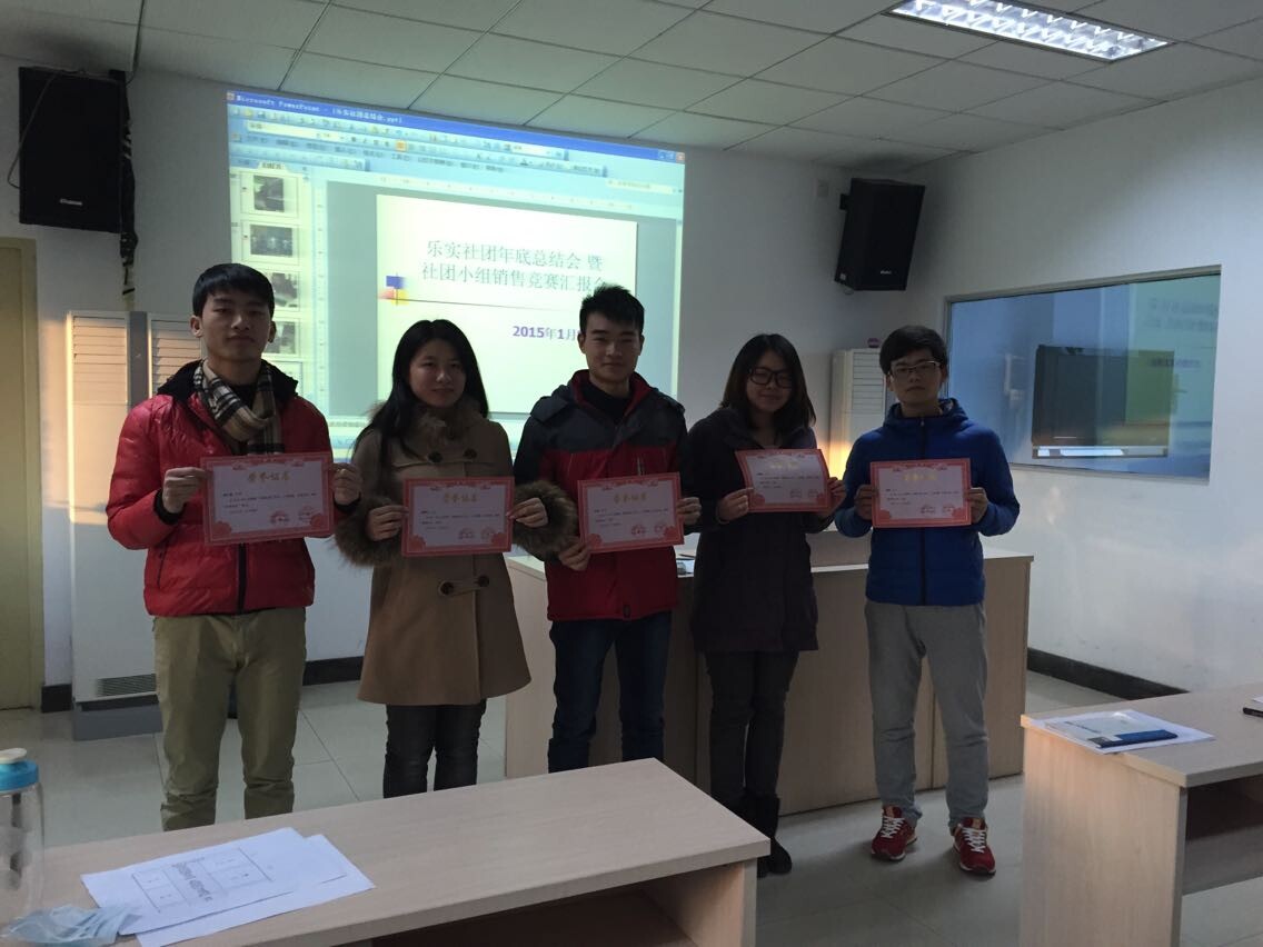 1月8日,乐实营销社在农经楼导模室召开了社团年底总结会暨社团小组销售竞赛汇报会。农经系副主任路老师、社团指导老师王海丽和吴瑞芹老师出席了此次会议。