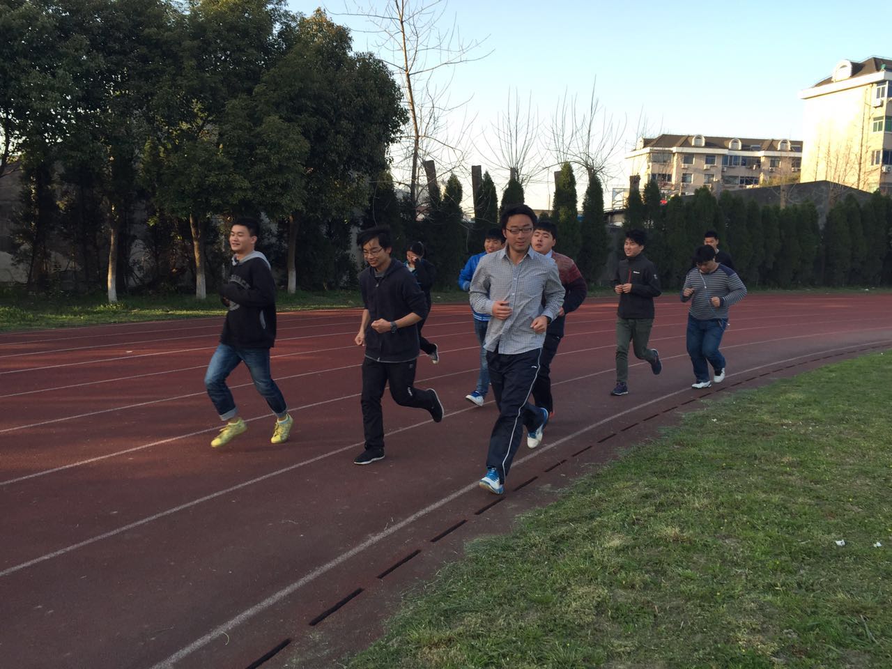 所有学生在傍晚5点操场集体整装待发,接着,随着陆老师的一声哨起,在体育部部长的带领下,大队人马迈着豪迈的步伐向前进发,整齐的队伍,整齐的脚步,一个个激情澎湃、奋发向上的少男少女们在操场上奔驰着,慢慢地随着时间地过去,同学们的体力逐渐地往下降,有些学生也已经赶不上大部队,但是他们也并没有放弃,同学们之间深厚的友谊带着他们往前冲,以及学生会主席和团副的阵阵加油声,他们还是坚持努力向前,向着目标,向着终点冲去,虽然跑完全程的他们感觉身心疲惫,但是面对镜头依旧自如地展示出天真无邪笑容的他们无疑是这片场地上最亮丽的一道风景线。