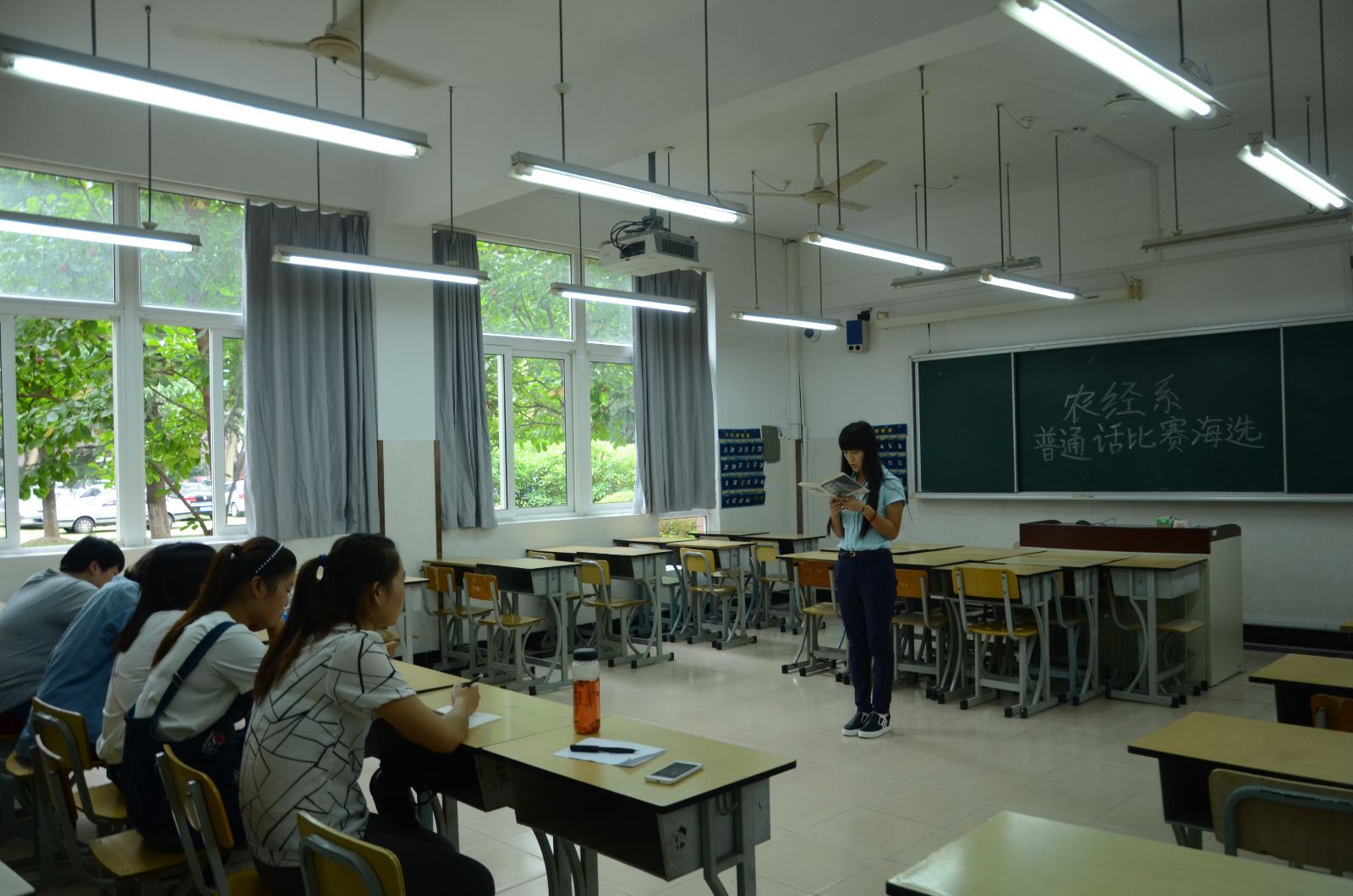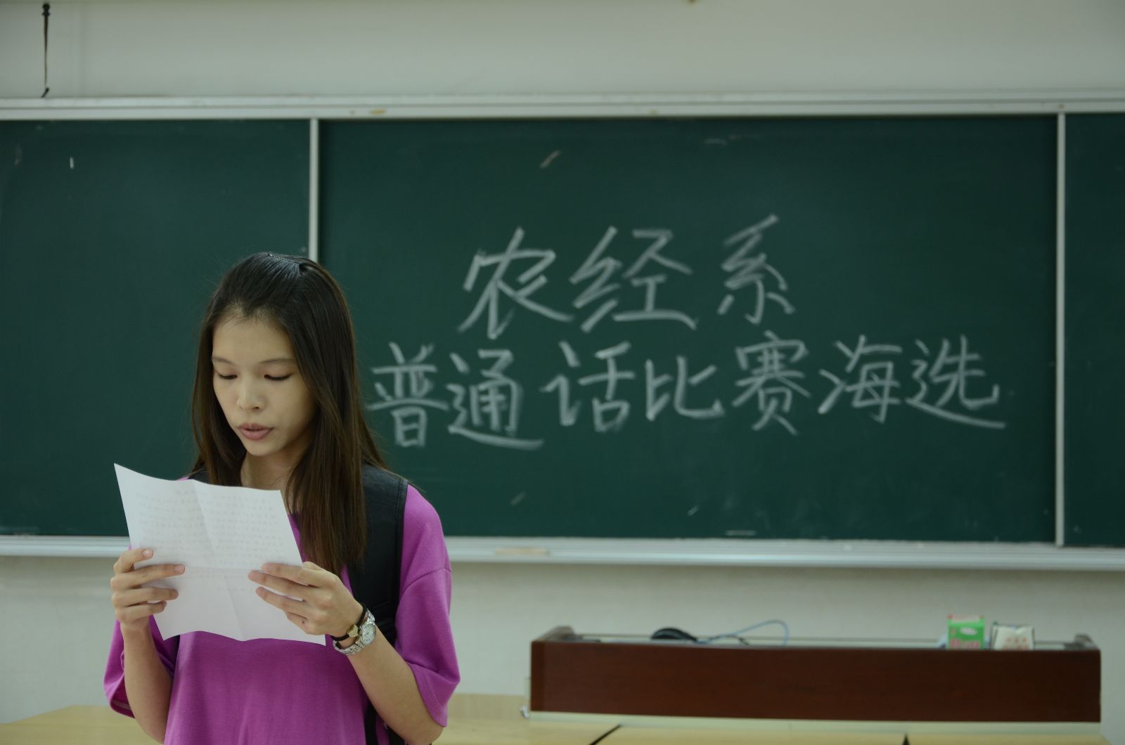 9月18日,由院学科部发起、系学科部所承办农业经济管理系普通话朗诵选拔赛圆满落幕。本次比赛位于第一教学楼102-105教室,共有农业经济管理系15级新生133人报名参赛,比赛现场精彩又不失庄重。