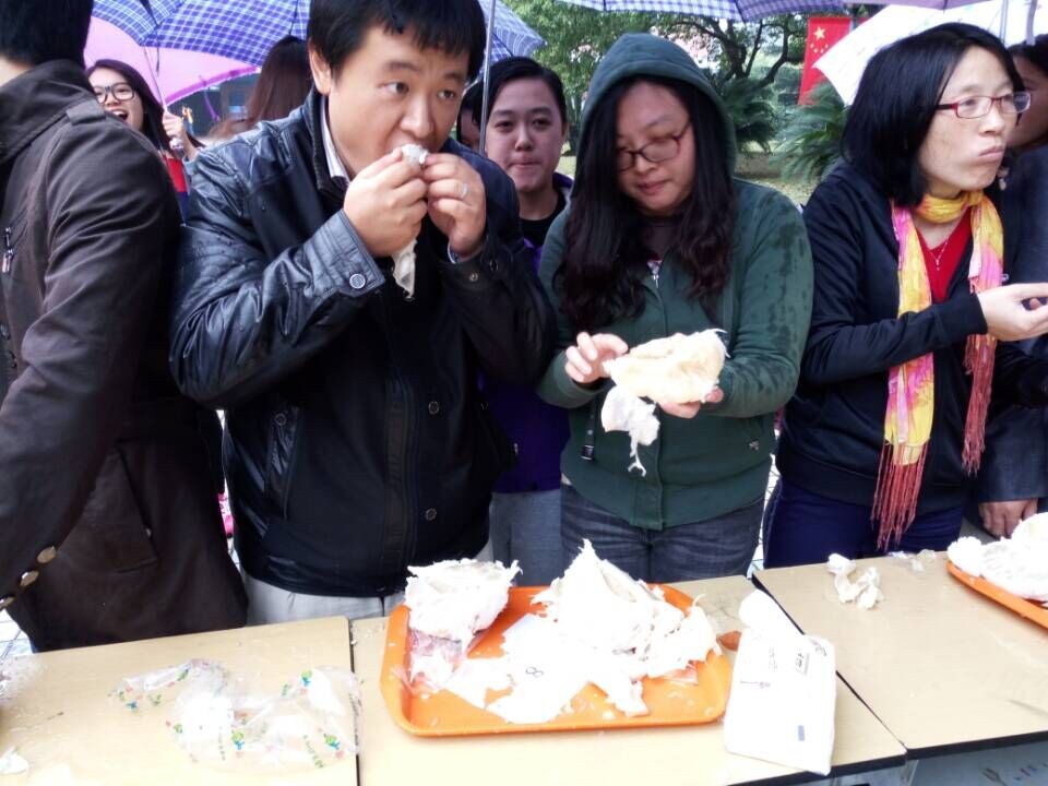 活动现场气氛火爆,想要参加活动的同学们更是把比赛场地周围围得水泄不通。活动一开始,参赛者们都八仙过海各显神通,有的温文尔雅;有的徒手直劈;有的善用巧法。周边的同学们都在惊呼:好厉害!吃柚子的时候更是战况激烈,当看到有参赛者在规定时间内已经把一个柚子吃掉,时间还有剩余时,一个一个小伙伴们都惊呆了!双人组的参赛者更是颜艺帝,为现场观众展现了团队合作的重要性。