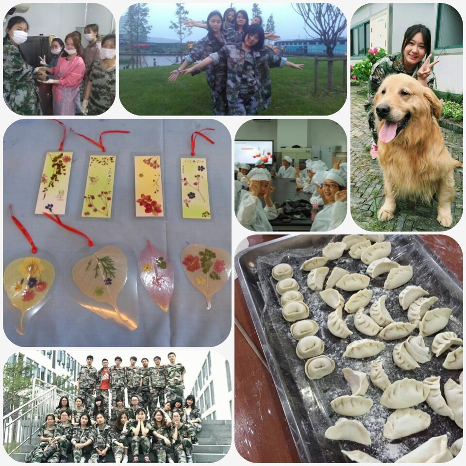 观光151潘登:我们充满着新鲜和好奇来到基地。第二天为狗狗洗澡,连我自己都不敢相信,之前我一直对小动物有恐惧和抵触,但它们的温顺和友好让我们感觉到它们的可爱与亲近。之后的几天,我们制作了酸奶,包饺子,还制作压花书签,叠餐巾。给我印象最深的是包饺子,我们组同学有的赶皮,有的包,有的负责煮,最后包了太多都吃不完,分给了其他组。在基地的这五天,让我体会到劳动的艰辛,也更懂得去珍惜别人的劳动成果。虽然累得全身酸楚,却感受到劳动的快乐,收获的幸福。回家后我开始帮父母分担家务,让妈妈吃上了我包的饺子。