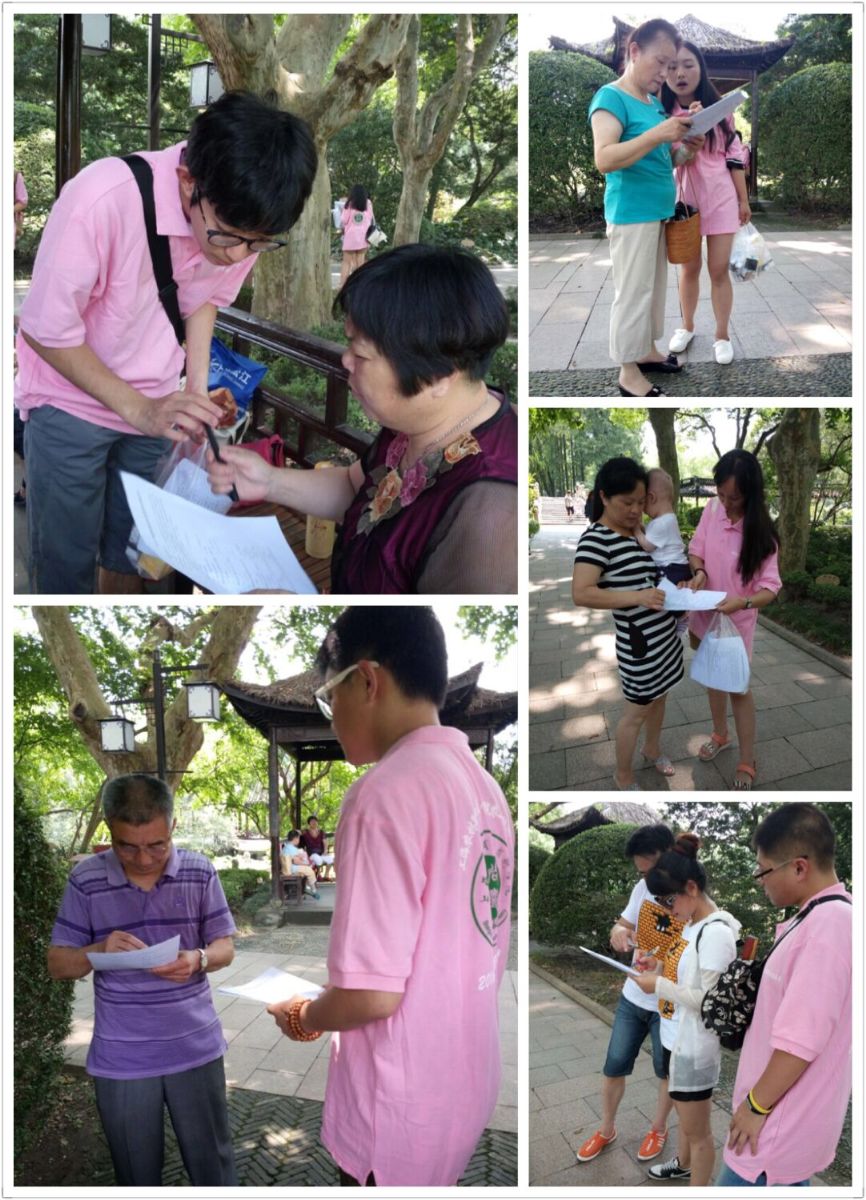 7月初,在醉白池和方塔进行的“关于上海园林景区讲解系统使用现状调查及完善对策分析”的调查活动,标志着农经系2016暑期社会实践系列活动的正式开启。两组队员分别在醉白池和方塔园分发问卷展开调查。同学们事先针对不同人群设计了A、B两套问卷。A卷专为游客设计,B卷用于景区内工作人员。炎炎夏日,同学们在景区内一边忙于与热心的游客交流园林讲解心得,宣传现代园林讲解系统,一边礼貌指导游客完成调查问卷,还不忘为完成问卷的游客送上一份夏日小礼品。除此之外,大家还分别对园区内的售票员、保洁员、管理员等进行现场采访,深入了解实际情况,并做好调研记录。