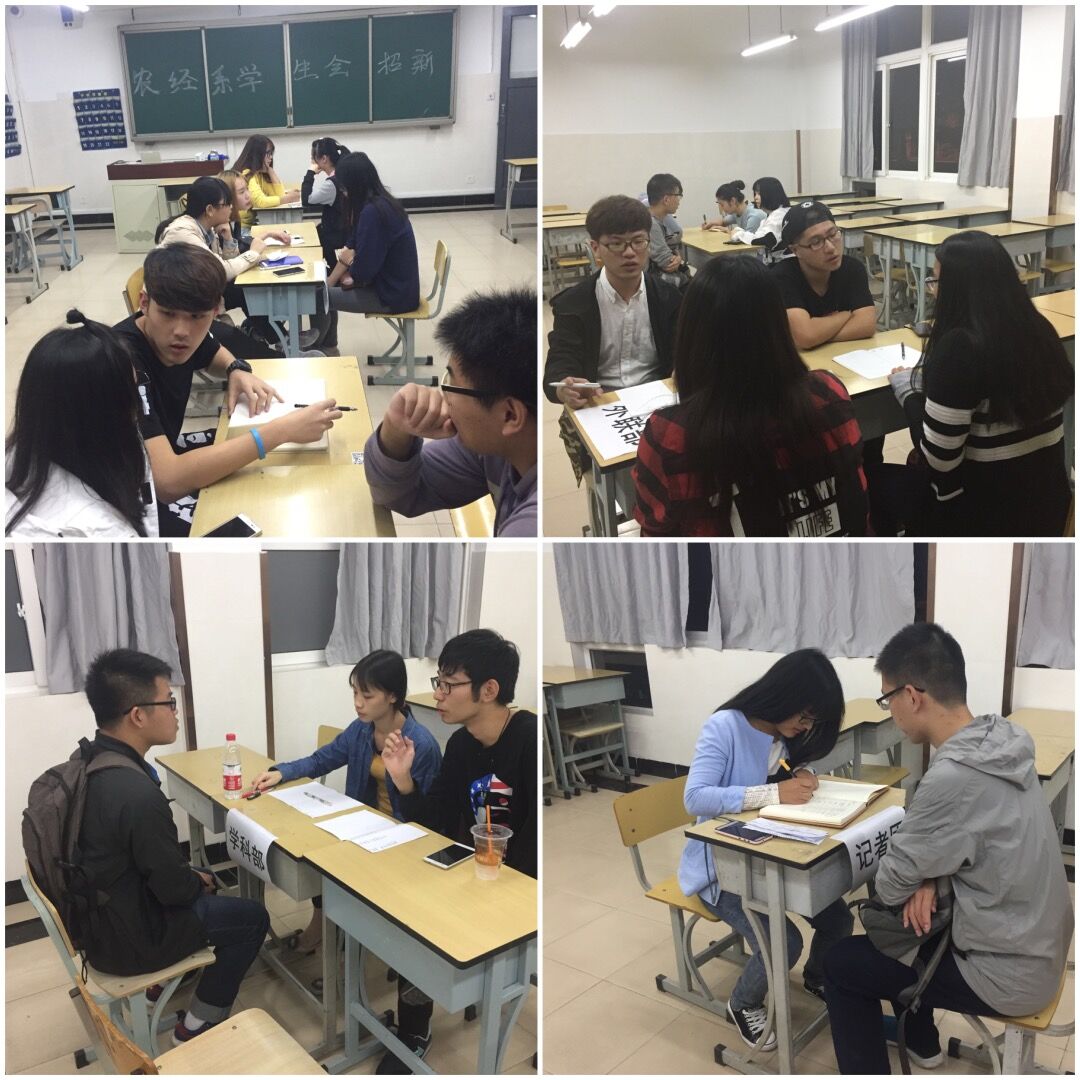 10月11日晚上六点,农经系学生会各个部门在一教一楼教室进行了面试工作,由各部门部长对16级报名加入系学生会的同学进行面试。