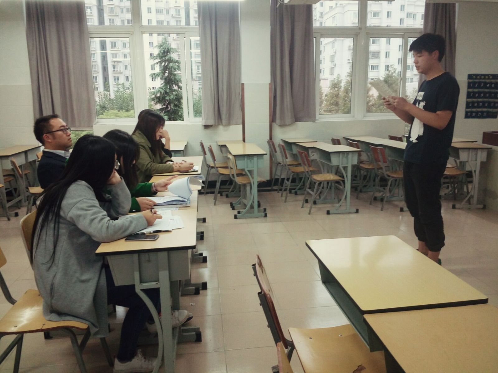 2016年10月14日下午16点30分,由农业经济管理系学科部组织举办的“四海同音,齐心协力”普通话比赛初赛在第一教学楼四楼举行。此次普通话比赛作为开学以来首次举办的大一新生竞赛类活动,我系邀请到了院团委副书记胡慧春老师担任此次比赛的评委,院学生会主席及系学生会干部们也参加并观摩了比赛。
