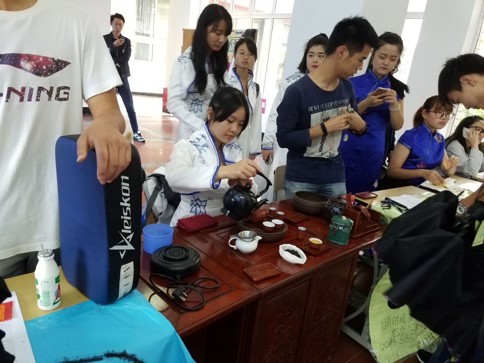 社团招新可谓如火如荼。乐实农产品营销社带来了新鲜的水果与同学们分享,吸引不少的学生前来报名;礼仪社的同学们身穿湛蓝色的旗袍让人眼前一亮,深受学妹们的喜爱,更是吸引了不少的女生前来报名;茶道社的社员们推来了茶车和茶具,为新同学展示茶艺;除此之外,学习园地社、篮球社、武术社等社团也是人头攒动,报名的同学络绎不绝。