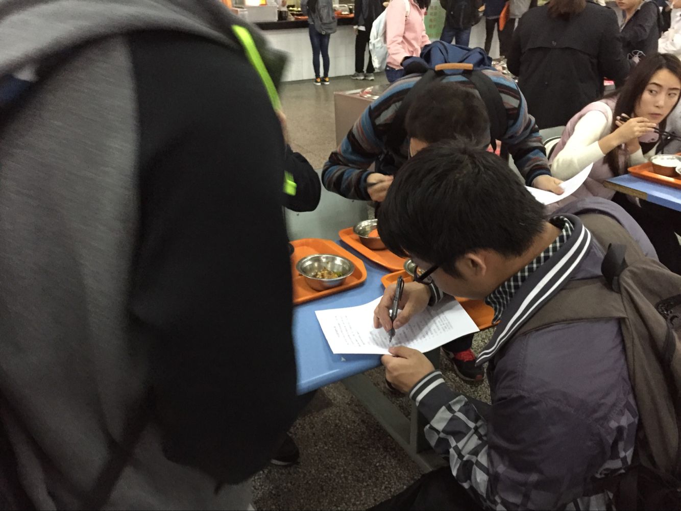 2016年11月14日下午16点30分,农业经济管理系实践部通过问卷调查的方式向同学们收集了许多关于食堂就餐方面的问题和建议,在食堂管理人员及就餐同学的积极配合下,调查活动圆满结束。