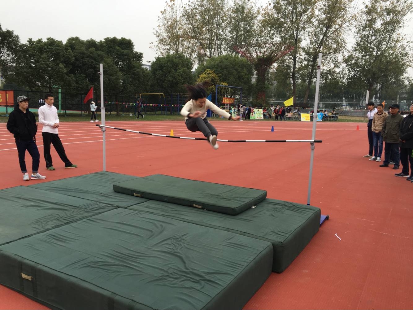 9点20分,田径比赛正式开始,我系师生斗志昂扬齐上阵,参与到男女子100米、200米、4X100米接力、跳高、跳远、铅球、女子800米、男子1500米、趣味足球射门等15个比赛项目中去。经过一天紧张激烈的角逐,在集体项目中,我系获得广播体操比赛一等奖,并以团体总分136分摘得第十三届学生运动会团体桂冠,热烈祝贺我系连续三年荣获团体总分第一的好成绩。