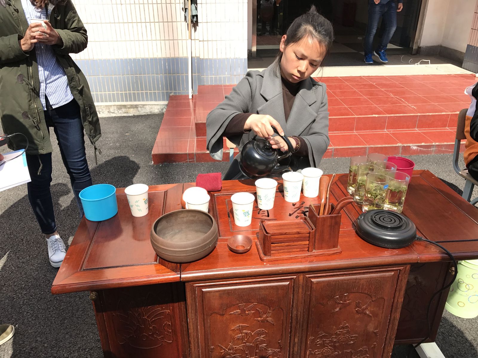 活动开始,由茶艺社的同学表演展示茶艺,吸引师生们纷纷前来驻足观看。品茶环节过后,志服部的志愿者们为广大参与者准备了6种茶叶,如贡菊、洛神花、铁观音、竹叶青、黄山毛峰、乌龙等供参与者识别,志愿者们在带领大家参与游戏的同时,积极为广大师生普及茶叶的历史文化知识,并向活动中表现突出的参与者赠予精美小礼品。