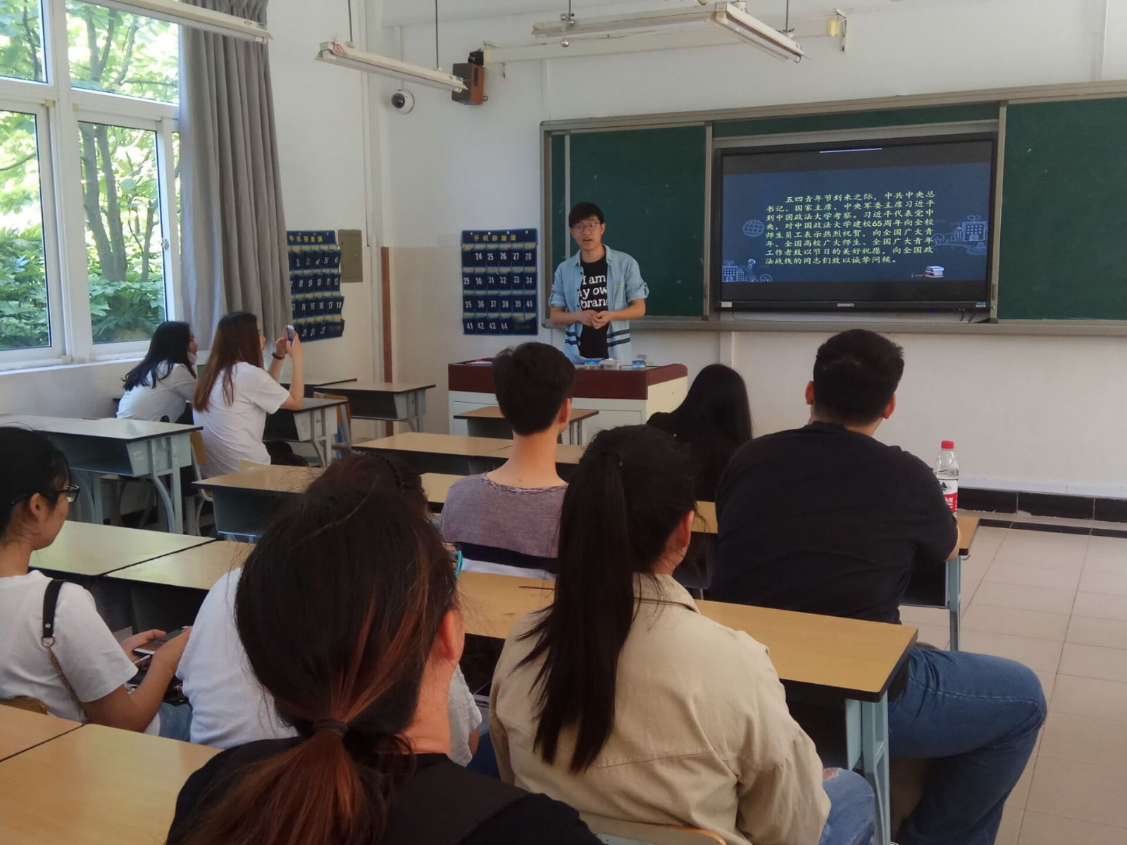 5月18日中午,农业经济管理系的学习园地社社长梅修带领我系全体团员干部于一教109教室开展“不忘初心跟党走”的学习发言活动。
