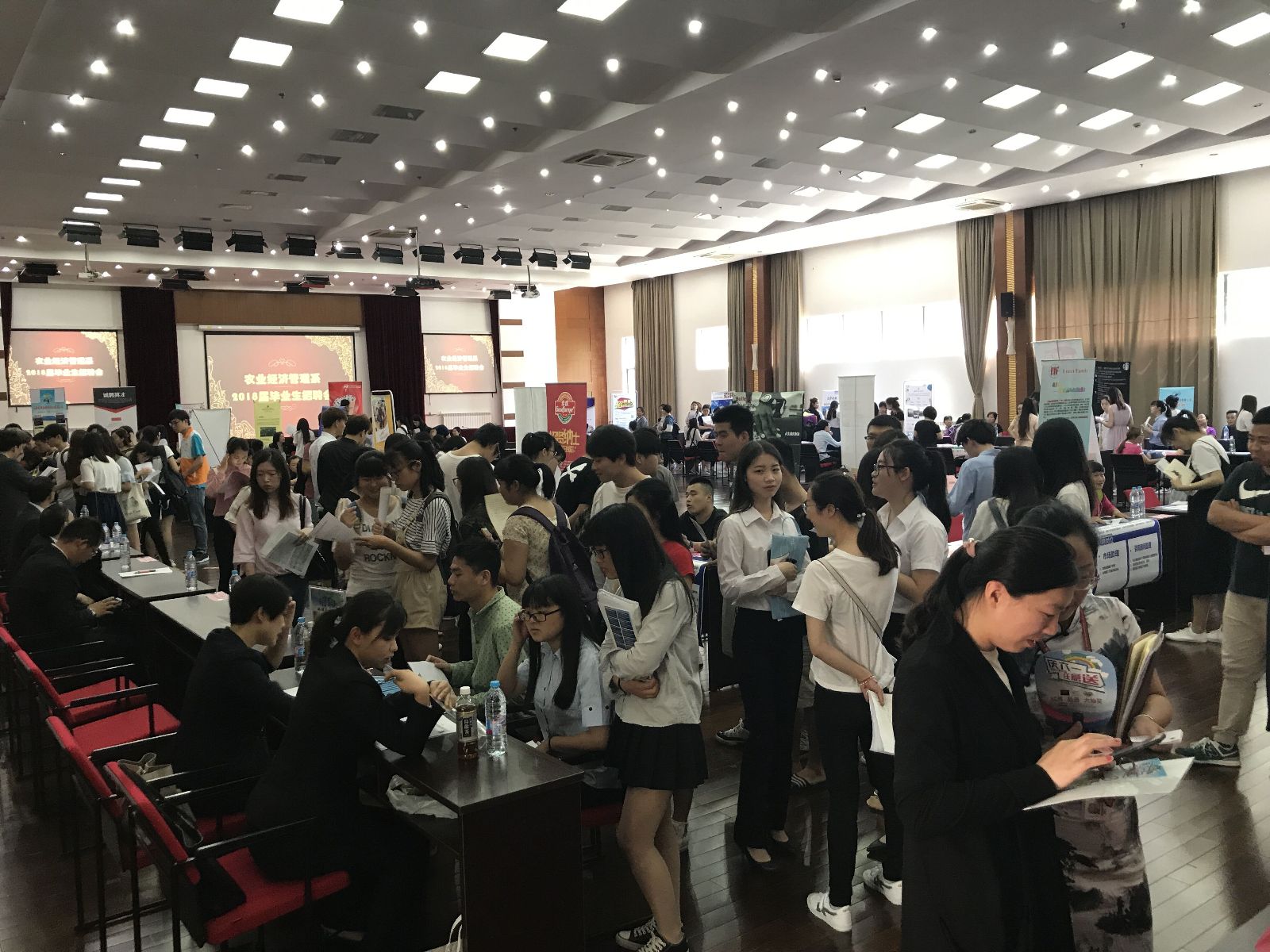 为了拓宽毕业生的就业渠道,农业经济管理系于2017年5月27日下午在综合楼205报告厅举办2018届毕业生校园招聘会。农经系2018届毕业生总人数为252人,此次校园招聘会到场参会单位70余家,提供岗位数400余个。据统计,此次大会入场人数400余人次,当场达成初步用工和见习意向近250人。