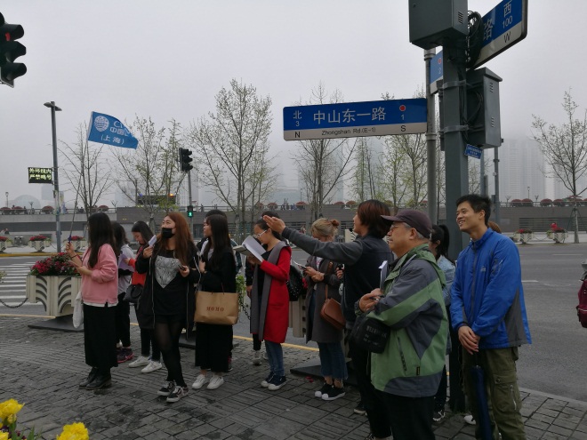 学生在外滩进行现场讲解,由旅行社的导游员指导评价,拓宽了学生的知识面,获得来自行业一线的实战经验,提高了的学生职业能力。