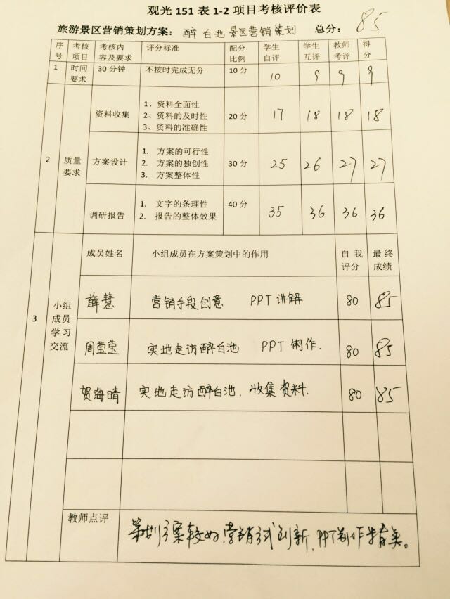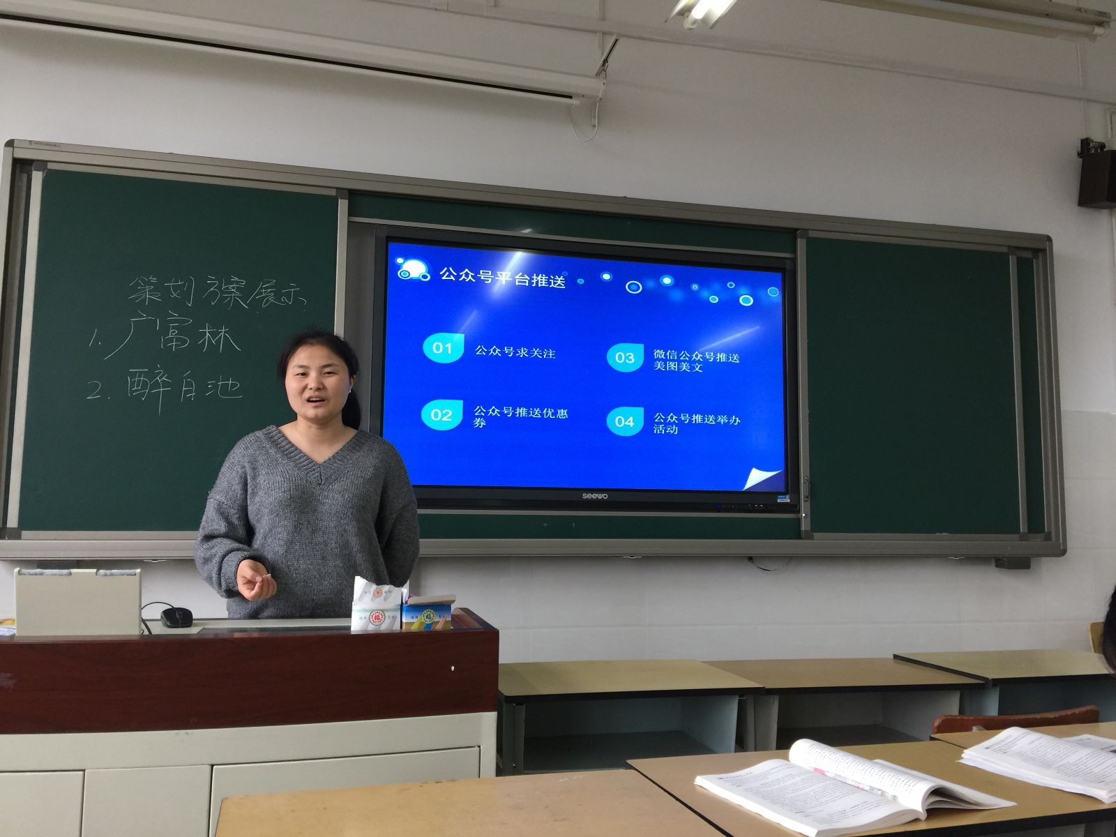 农业经济管理系蔡会敏老师开发的“旅游景区营销策划方案展示”实训项目,参加了“乐实杯”品牌实训活动。该项目以松江区旅游景区为载体,旨在培养学生运用恰当的营销组合策略准确进行旅游市场定位,制定出提升旅游景区知名度的营销策划方案能力。通过对班级同学进行分组,由各小组实地调研松江旅游景区概况,并结合文献阅读的方法搜集旅游景区信息,确定景区主题产品。在此基础上,各组对本组旅游资源进行方案设计,运用营销4P理论对旅游景区方案进行策划,并同欢乐谷景区的旅游营销实际情况进行对比。各小组制作方案之后,对本组的策划方案进行展示。该项目已顺利实施,同学们积极参与,对旅游市场营销课程的学习兴趣有了进一步提高。