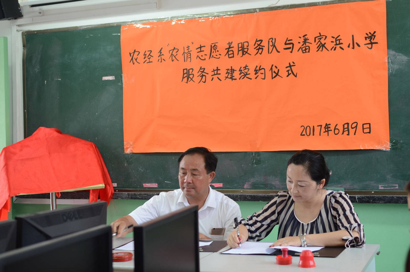 为促进青年志愿者志愿服务进一步发展,农经系党支部于6月9日赴潘家浜小学续签志愿服务共建协议暨基地揭牌仪式。农业经济管理系党支部书记沈悦带领全系党员教师及结对学生和农经系志愿者代表参加了本次仪式,并开展了以“携手帮困结对学生,关爱农民工子弟”为主题的党日活动。