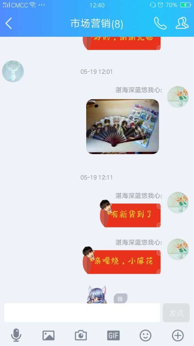 各团队按照营销策划方案的设计,在线上和线下进行产品的宣传和推广,并于第12、13周在校园内展开现场销售。其中,一些团队充分运用线上渠道进行销售,下图为分别为“星梦”小组用QQ进行卡通折扇产品的宣传和“是仙女啊”团队的香水小样微店截图。