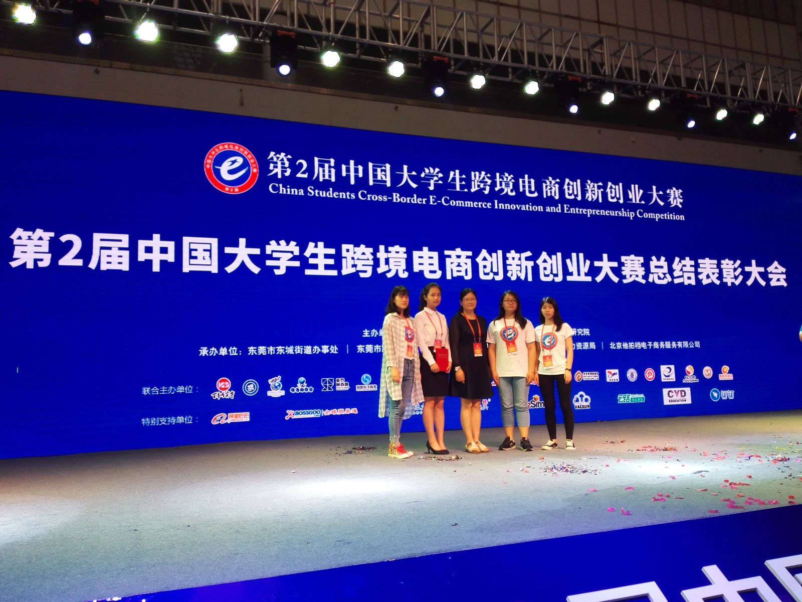 2017年6月15日,第二届中国大学生跨境电商创新创业大赛在东莞市国际会展中心落下帷幕,我院农业经济管理系的潘娇娇、季芸、杨雪雪和卢萍四名同学组成的“四大神兽”队参加了本次比赛,在与来自全国近400所高校的参赛团队进行激烈角逐后,最终荣获二等奖佳绩,及奖金5000元。杨冬梅老师和钱玮康老师获得优秀指导教师奖。