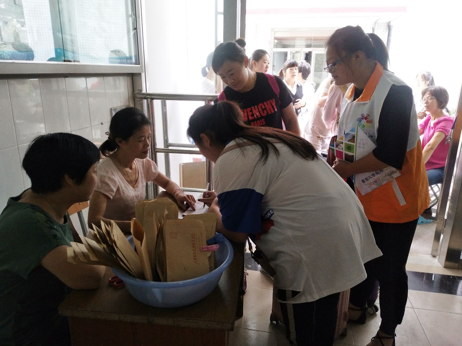 在迎新当天,我系准备充分,校园内到处可见志愿者们忙碌的身影,在此次迎新中,我们分五个组展开新生接待工作,分别是咨询组、宣传组、接引组、信息登记组、后勤组。宣传组负责制作迎新海报、分发宣传册和撰写新闻稿;接引组负责引导新生前往报到地点,协助新生办理报到手续,在引路途中主动帮着拎行李,热情介绍学院情况;新生在信息登记组的辛勤服务下,井然有序地进行报道工作,完成了他们的入学第一步;咨询组由系党支部书记沈悦、团总支书记周培璐、辅导员唐晓英、张婧敏和孙冬敏坐镇,现场向学生及家长讲解学院和系部相关情况,并及时解答同学和家长的问题,让家长放心、学生安心;最后新生办理完入学手续后,在后勤组的引导下入住宿舍,开启了大学生活的新篇章。