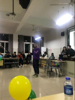 下午六点整,先进行抽签签到取号后,各部门人员就坐。首先,杨帆的一首动听的《不能说的秘密》拉开了联谊晚会的序幕,紧接着同学们开始了第一轮游戏环节,爱在你心口难猜,在游戏过程中所有选手都使出浑身解数去套路对方上套,展现了各位选手的临时应变能力以及口才。随后进行了三等奖的抽奖共十位。紧接着,常思源,柴元元等人活力四射的街舞跟加油操让全场观众为之震撼、意犹未尽。在晚会期间穿插着各种游戏,恰如其分的将晚会带向一个又一个高潮。挤气球环节,同学们在“面红耳赤”的欢乐中体会到了合作的重要性,虽然刚开始有点害羞但是最后大家都圆满的完成了任务,随后漆力子同学的打碟掉足了现场观众的胃口,气氛热烈劲爆。