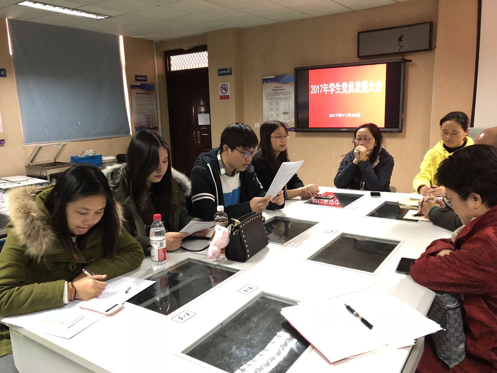 2017年11月24日,农业经济管理系党支部在农经楼108召开了支部党员大会。大会的主要议题是关于拟吸收梅修和许雯倩同学为中共预备党员。