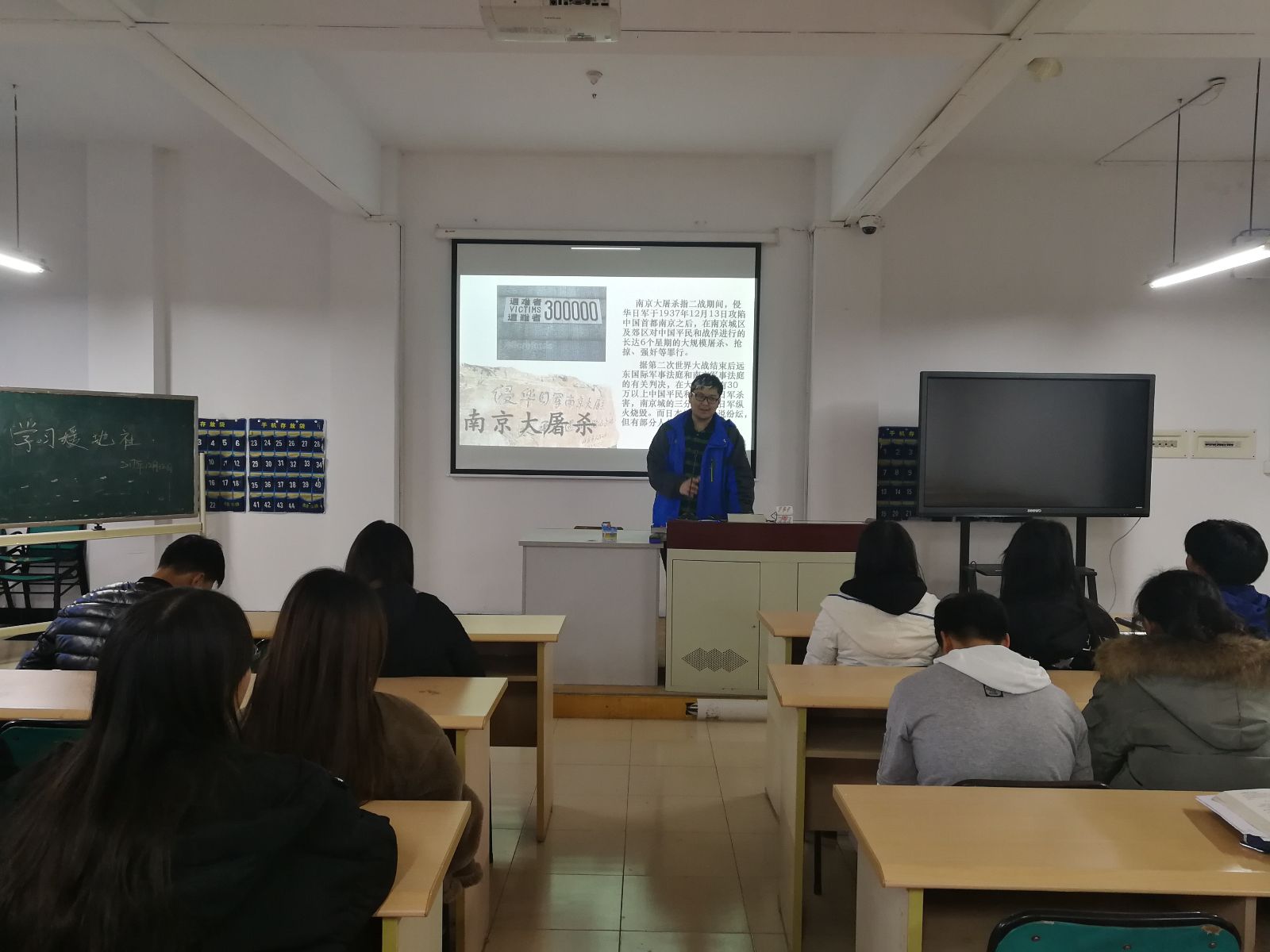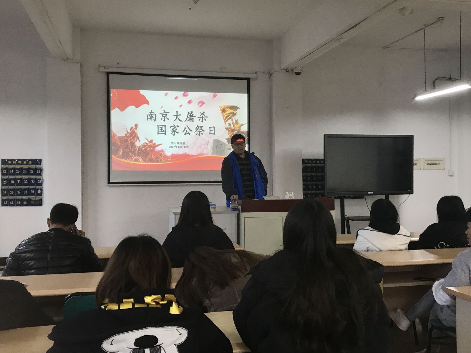 2017年12月13日是南京大屠杀的80周年纪念日。为进一步强化青年学生的爱国主义思想意识,鼓励大学生进一步坚定政治立场,牢记历史,勿忘国耻,树立远大革命理想和崇高人生信念,教育广大学生不断增强社会责任感和使命感。农经系学习园地社于12月12日在第一教学楼213教室开展不忘国耻——祭奠“南京大屠杀”活动 。本次活动由副社长王寅汉全程主持。