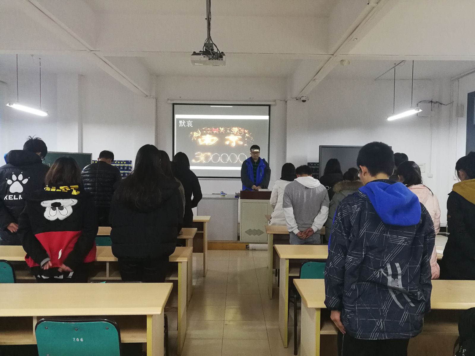 最后,全体社员起立为在南京大屠杀中遇难的30多万同胞们默哀一分钟,悲愤与觉醒交织,强国、兴国的信念,不忘国耻,以高度的警觉性去实现民族的自立自强是每一位大学生内心的呐喊。