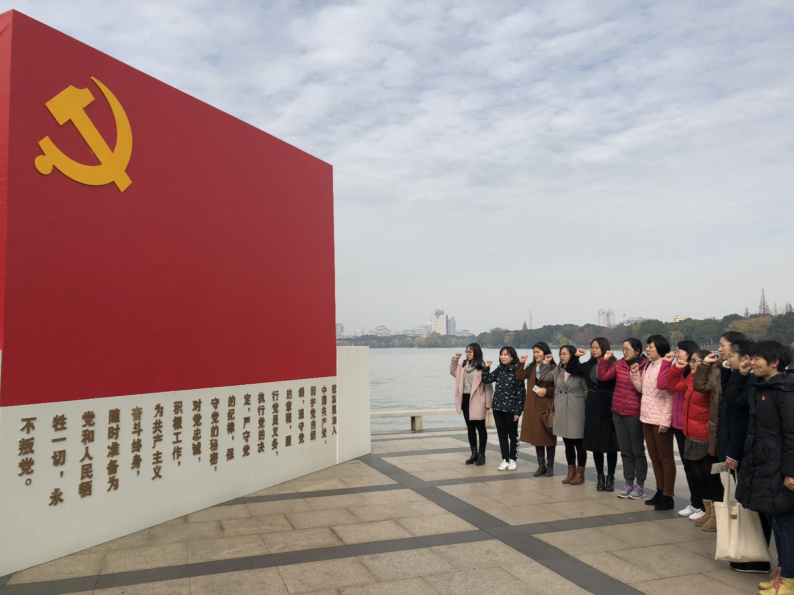 驻足南湖畔红船边,聆听党的光辉历史,党员们近距离体会了当年革命的时局动荡和建党艰辛,切身感受到党的光荣伟大和今天幸福生活的来之不易。在南湖畔的党旗下,由党支部书记沈悦领誓,全体党员右手握拳,面对党旗重温入党誓词,警醒大家加强党性修养,铭记党的光荣使命,认清自己肩负的历史使命和时代责任,更加坚定了为共产主义事业奋斗的信念。