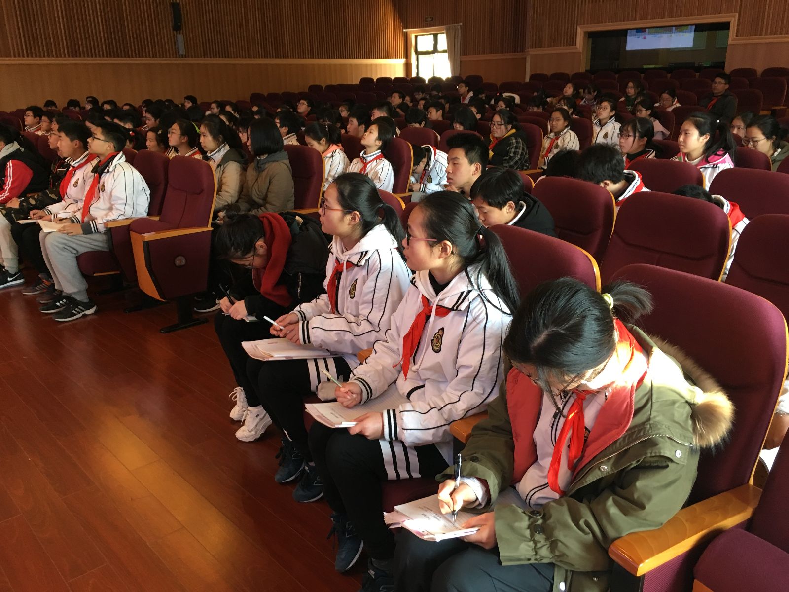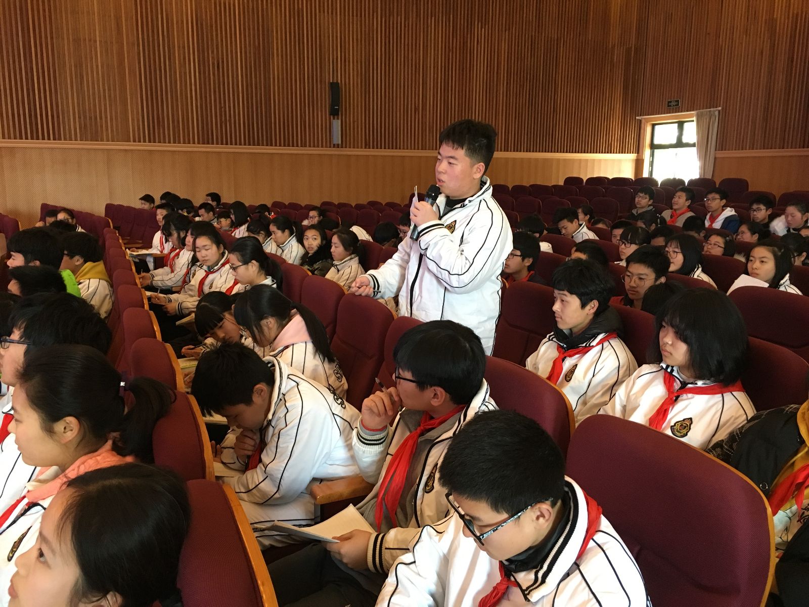 本次团课主讲者为17级志愿者姚佳轩,在上外松外的大礼堂面对100多位入团积极分子,姚佳轩同学毫无惧色,老练熟道地带着8年级、9年级入团积极分子一道重温了雷锋故事,了解到雷锋精神的实质。观看完雷锋精神视频后,同学们积极发言,抒发着心中的所思、所感。知识问答环节气氛热烈,同学们纷纷举手抢答,姚佳轩以PPT的形式向我们展示了我系志愿者们的风采,视频中每一张图片都体现着新时代下雷锋乐于助人、无私奉献的精神。最后,本次团课在美好图片和精彩故事的分享中圆满结束。