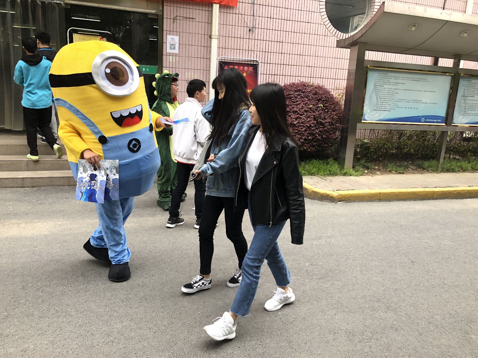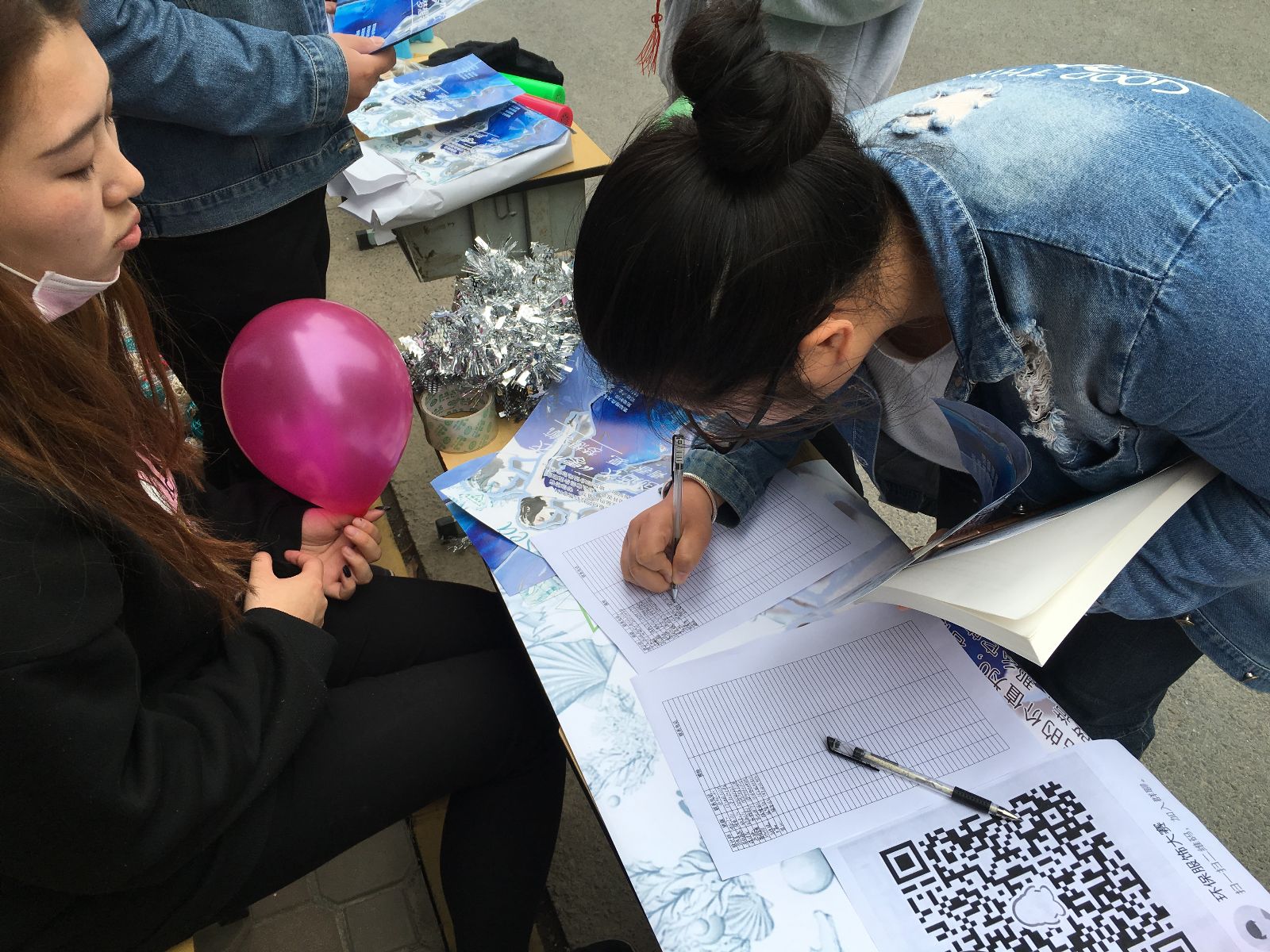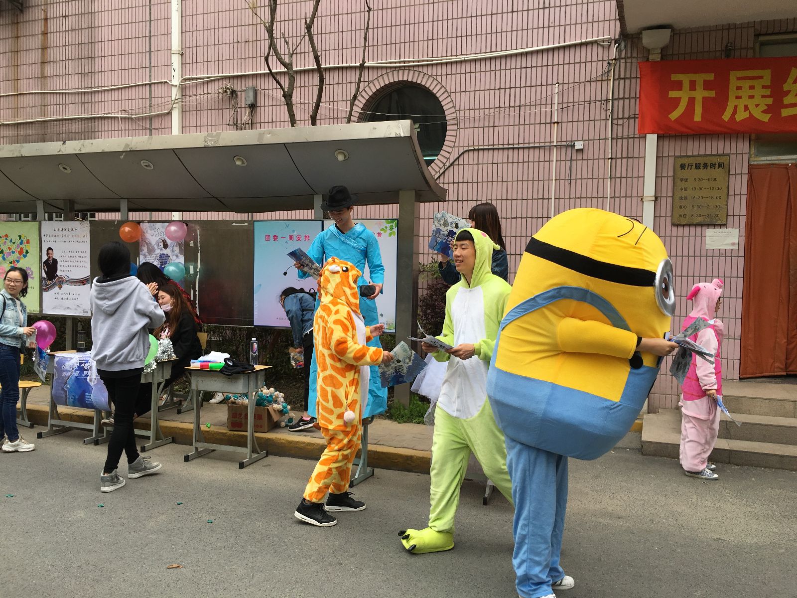 本次活动旨在提高同学们的环保与创新意识,面向全院同学进行作品征集,要求参赛选手利用闲置或废弃材料,例如蚊帐、旧报纸、易拉罐、塑料袋等制作衣服,本届比赛更是增加了新的模块:设计翅膀。当天的宣传现场,工作人员们穿上了往届大赛的优秀作品宣传,“奇装异服”很快吸引了大量学生的眼球,更有同学拿起手机与模特拍照合影,更为本次的落地宣传增加了感观上的感受。工作人员抓紧时机派发宣传单,并耐心地为同学们解答对于环保服饰大赛的疑问,详细地介绍了相关报名方式和比赛规则。在工作人员的大力宣传与视觉冲击下,报名现场人头攒动,不少同学驻足围观海报上展示的往届优秀作品,纷纷在报名表上填上自己的名字,并表示将会制作出更精良的作品。