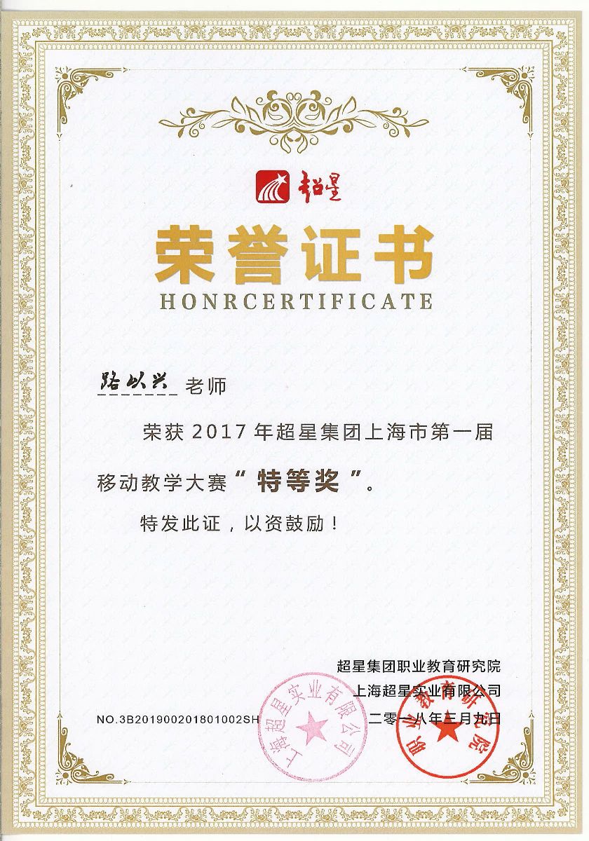 第一届移动教学大赛共有100多位教师报名参加,共设立特等奖三名,一等奖八名,二等奖十五名。经过专家评审,我系路老师获得特等奖。