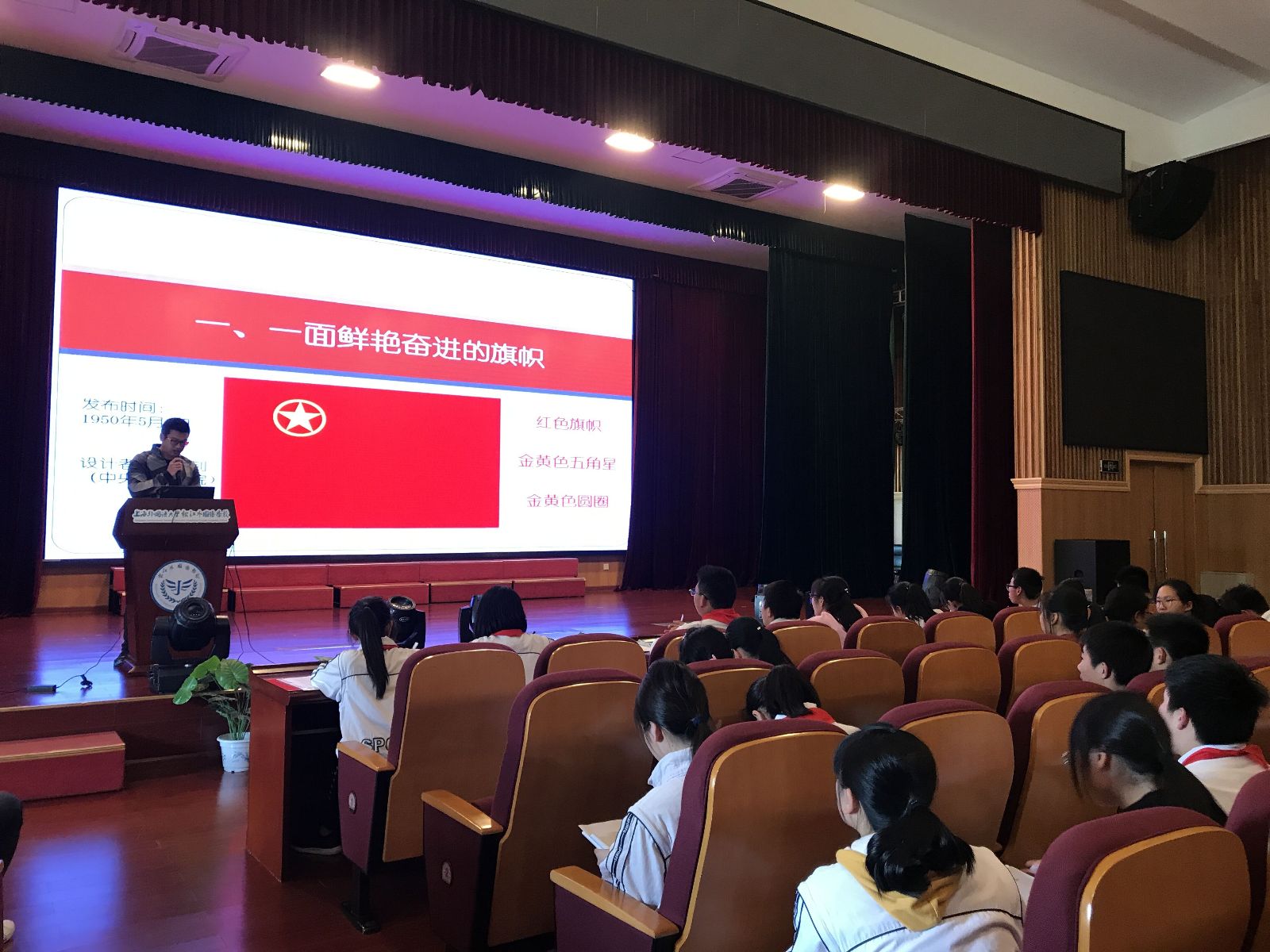 农经系为上海外国语学院松江外国语学校(以下简称上外松外)提供的入团培训课程从2017年12月29日开班到2018年4月20日结课,团课志愿活动逐渐步入尾声,入团积极分子们经历了团的知识和相关主题学习,接下来这140名同学将接受正式入团前的团知识考核。4月20日下午两点,我系6名志愿者来到上外松外参加了“入团积极分子团课”结课仪式,上外松外团委书记杨利抗、140名入团积极分子参加了本次课程,由上外松外的江鑫龙老师担任主讲人。