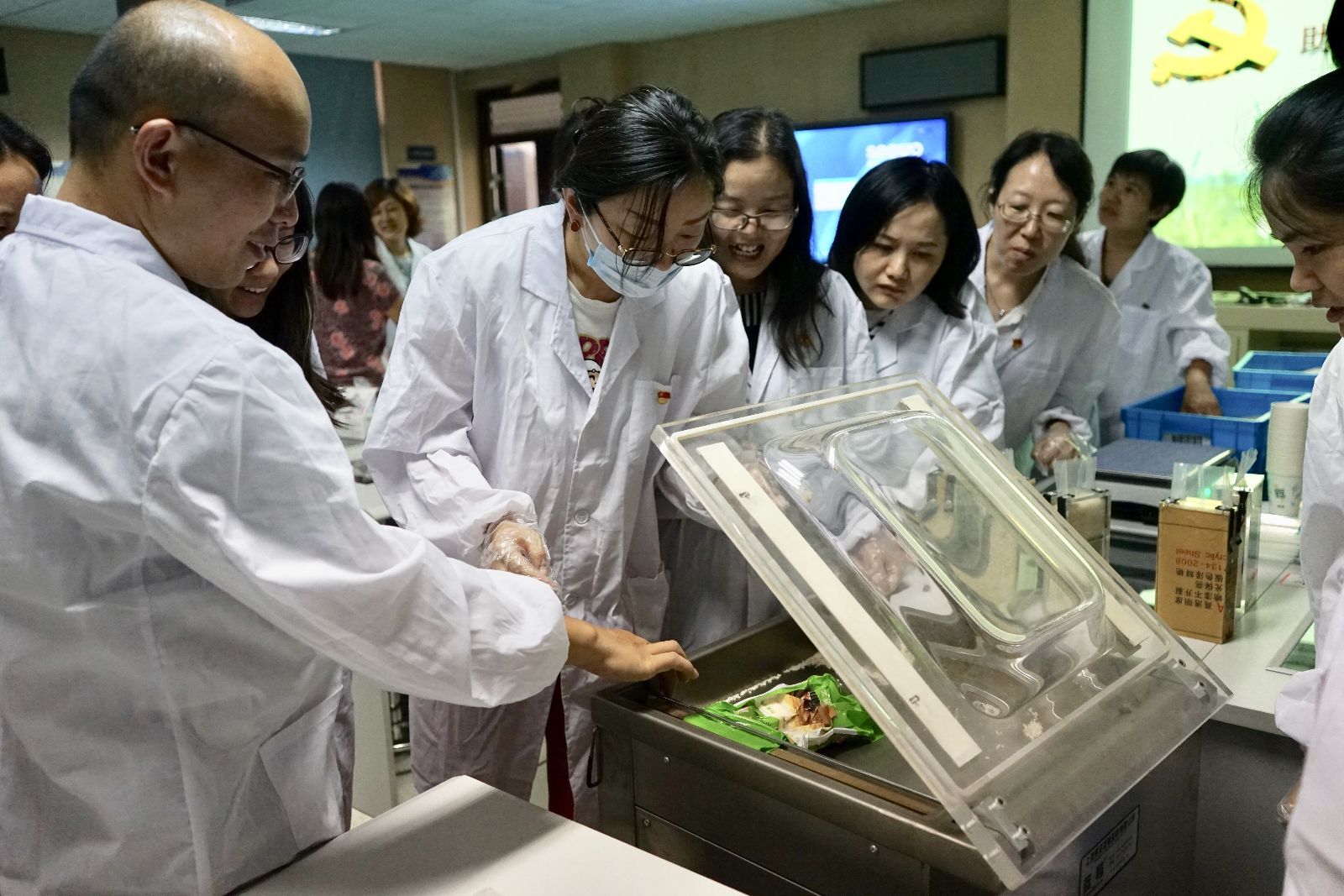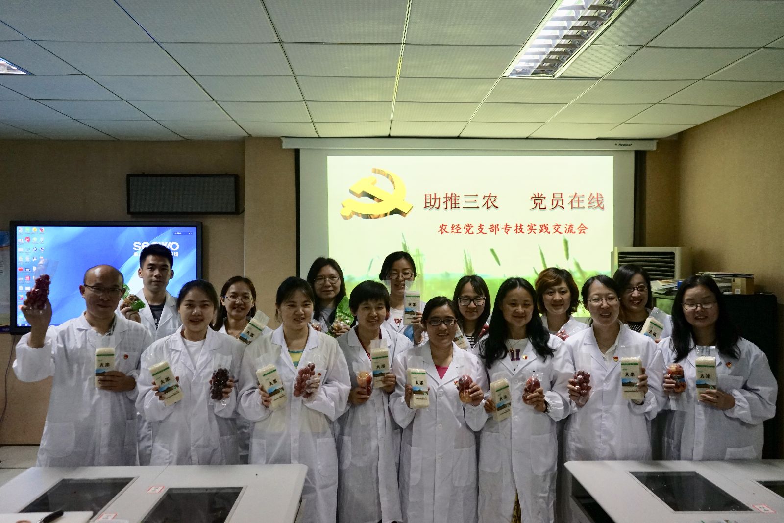 返校后,在农经专业路以兴老师的指导下,全体党员在农经楼108开展农产品分装专业技能实践交流会,大家还分别学习、掌握了对水果、大米等农产品的分装和抽真空包装技术。