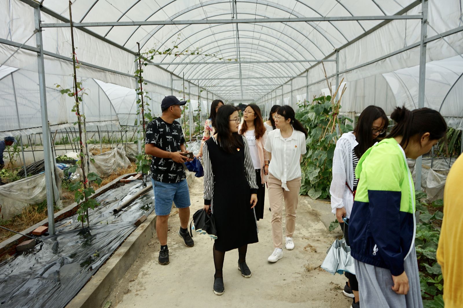 党员教师参观了乍浦镇新农村建设成果,并就九龙生态农庄的生产和经营模式进行专业化的深入探讨。九龙农庄占地200多亩,以水果种植和家禽养殖为主要,农庄负责人边带领大家参观各个生产大棚,边一一解答大家提出的困惑和思考,并就融合打造休闲农业、休闲农业与美丽乡村建设的转型升级经验与党员教师们进行交流分享。党员教师还纷纷深入田间参与了农事体验。