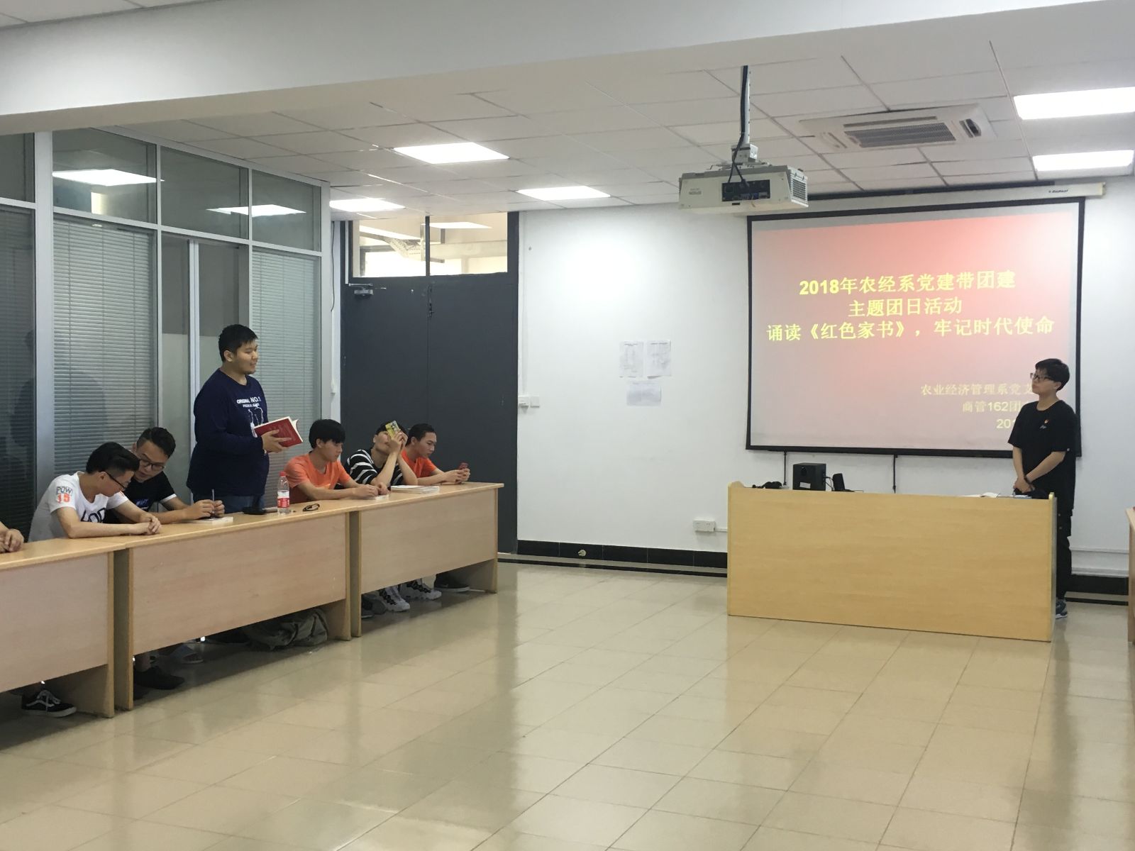 2018年7月4日下午2点,农经系党支部带领结对的商管162团支部开展“诵读《红色家书》,牢记时代使命”为主题的党建带团建活动。出席本次活动的有农经系党支部书记、副主任张媛、农经系党员教师代表蔡会敏、农经系党支部组织委员张婧敏、农经系团总支书记周培璐、辅导员唐晓英以及商管162全体成员。
