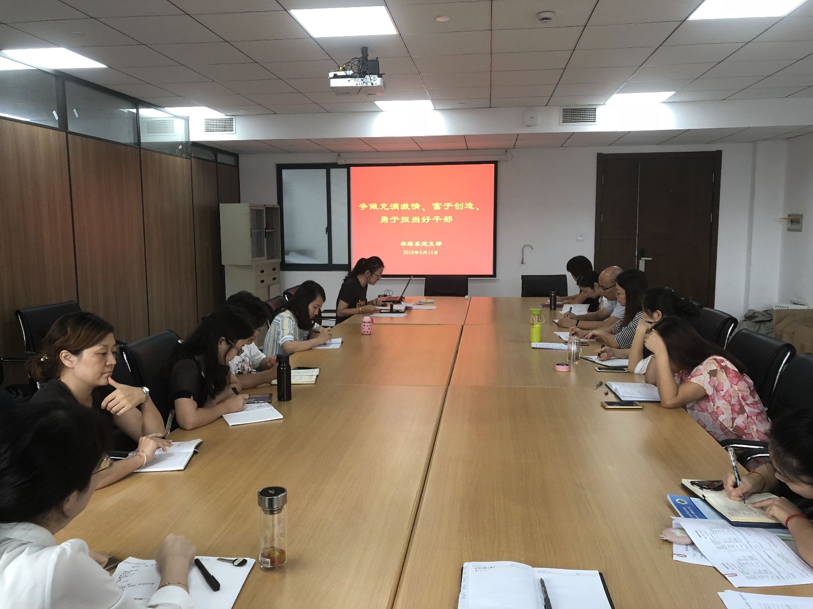 2018年9月14日,农经系党支部组织全体党员在综合楼7楼会议室开展 “争做充满激情、富于创造、勇于担当好干部”深入学习市委书记李强同志在全市组织工作会议上阐释新时代上海干部特质的讲话内容。