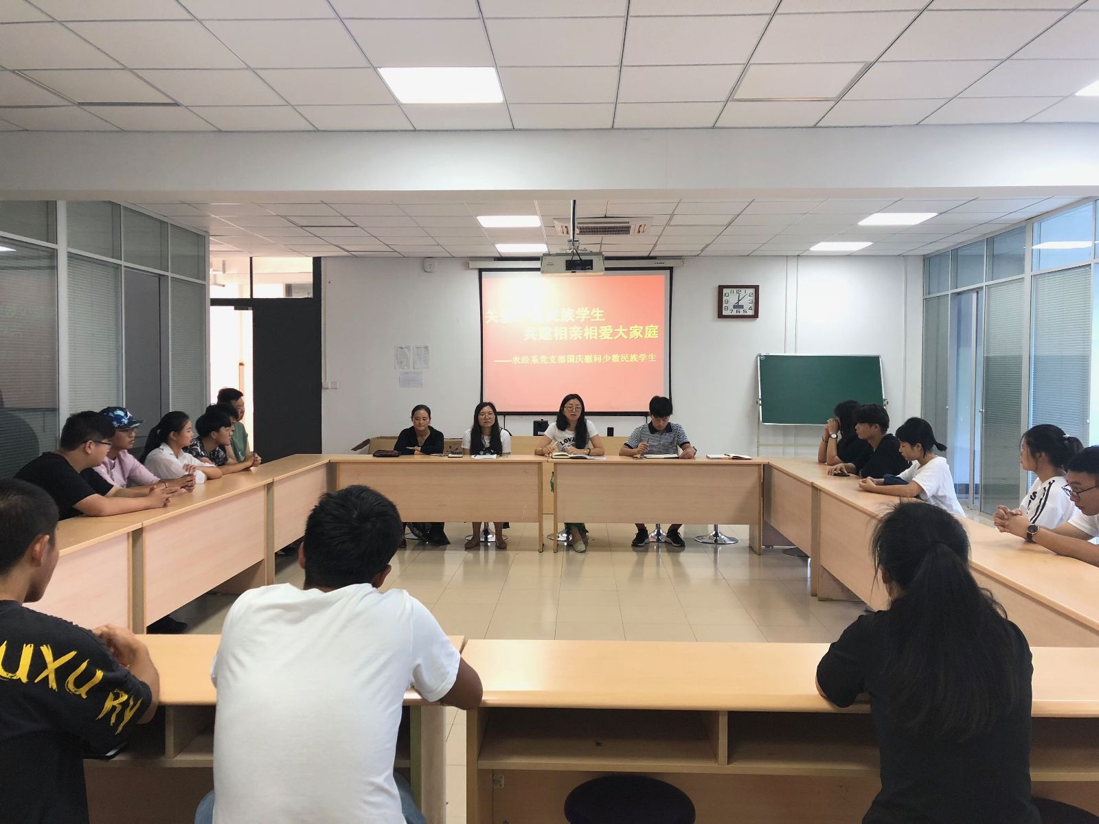 2018年9月29日中午,农经系党支部在一教415教室举办了“关爱少数民族学生,共建相亲相爱大家庭”的国庆慰问活动。农经系党支部书记张媛,农经系辅导员以及少数民族学生参加了此次活动。