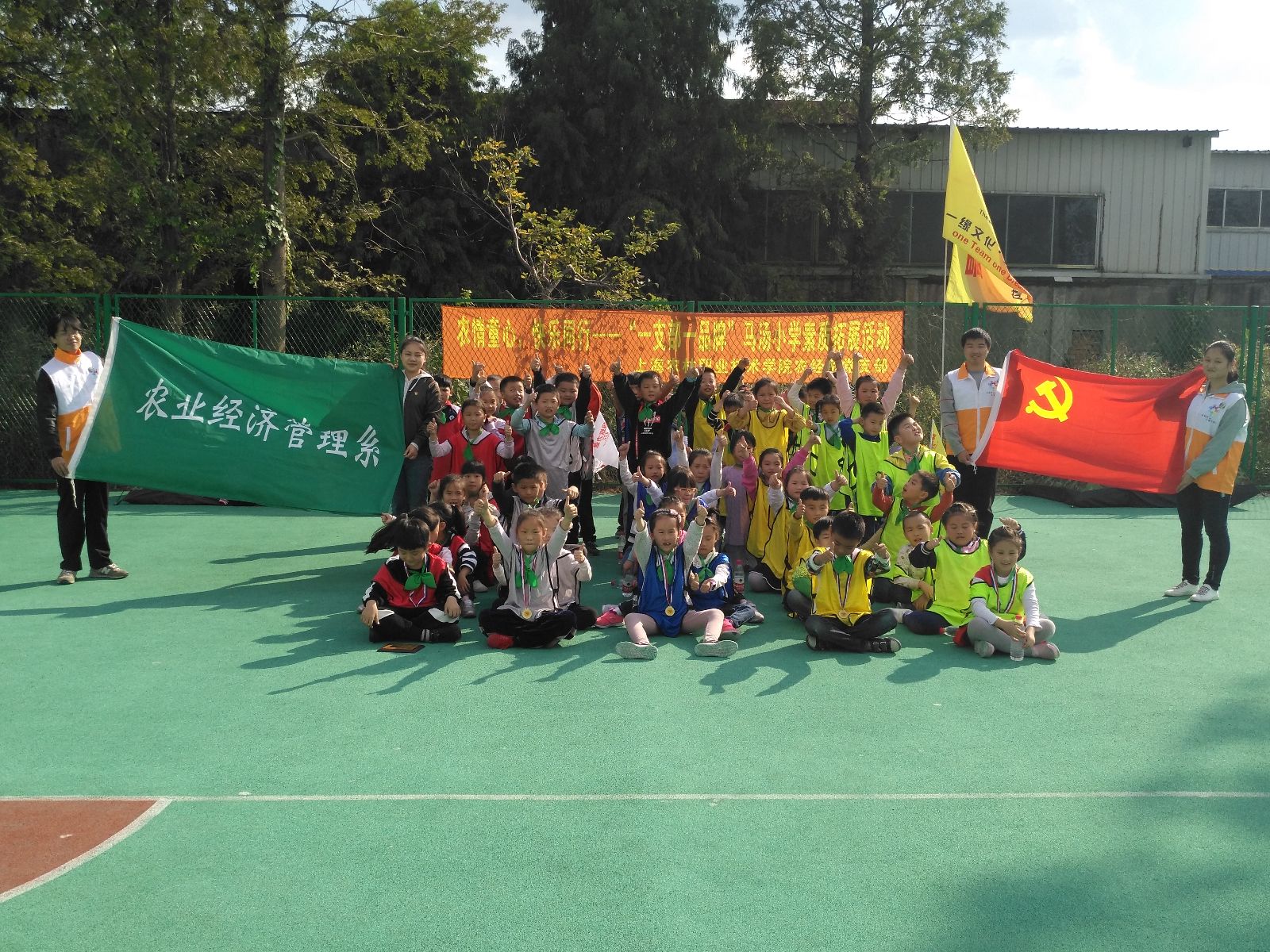 2018年是农经系党支部与马汤村小学(原潘家浜小学)结对共建的第八年,根据党委对党支部主题党日活动的要求,农经系党支部将继续为马汤村小学提供主题教育、素质拓展、志愿服务、实践参观等帮扶服务,丰富“多彩农经”支部品牌建设,提高支部服务能力。10月12日下午12点40分,我系团总支书记周培璐带领5名志愿者来到马汤村小学,组织二年级50名小学生开展主题为:“农情童心,快乐同行”的素质拓展活动。