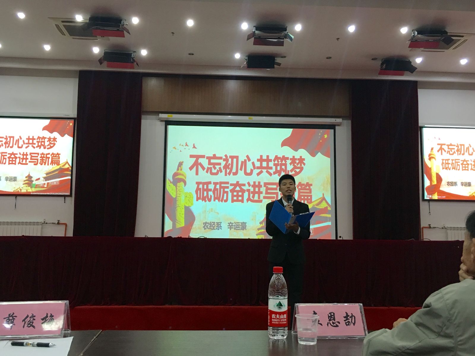 2018年10月17日下午,我院在图书馆报告厅举办《学习习近平新时代中国特色社会主义思想》普通话演讲比赛。学院教务处副处长薛俊梅,团委书记、学生处副处长胡慧春,语文教研室教室李宗贤以及学院团委组织部部长康佳乐担任本次比赛的评委。