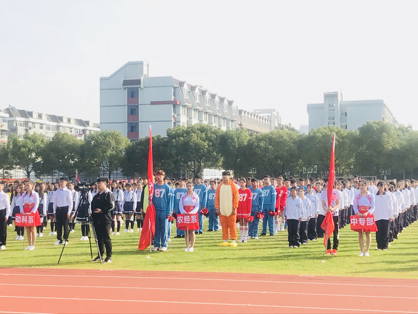 上午8点15分,国旗护卫队和红旗方阵作为先导队最先步入会场,各系部学生、教职工所组成的8个方阵紧随其后依次入场。我系方阵队员精神饱满,步履坚定,迈着矫健的步伐大步向前,诠释着新时代的体育精神和“自强不息、团结奋进、爱校敬业、追求卓越”的上农精神,别具一格的舞蹈表演更是赢得了在场师生的掌声和赞叹。