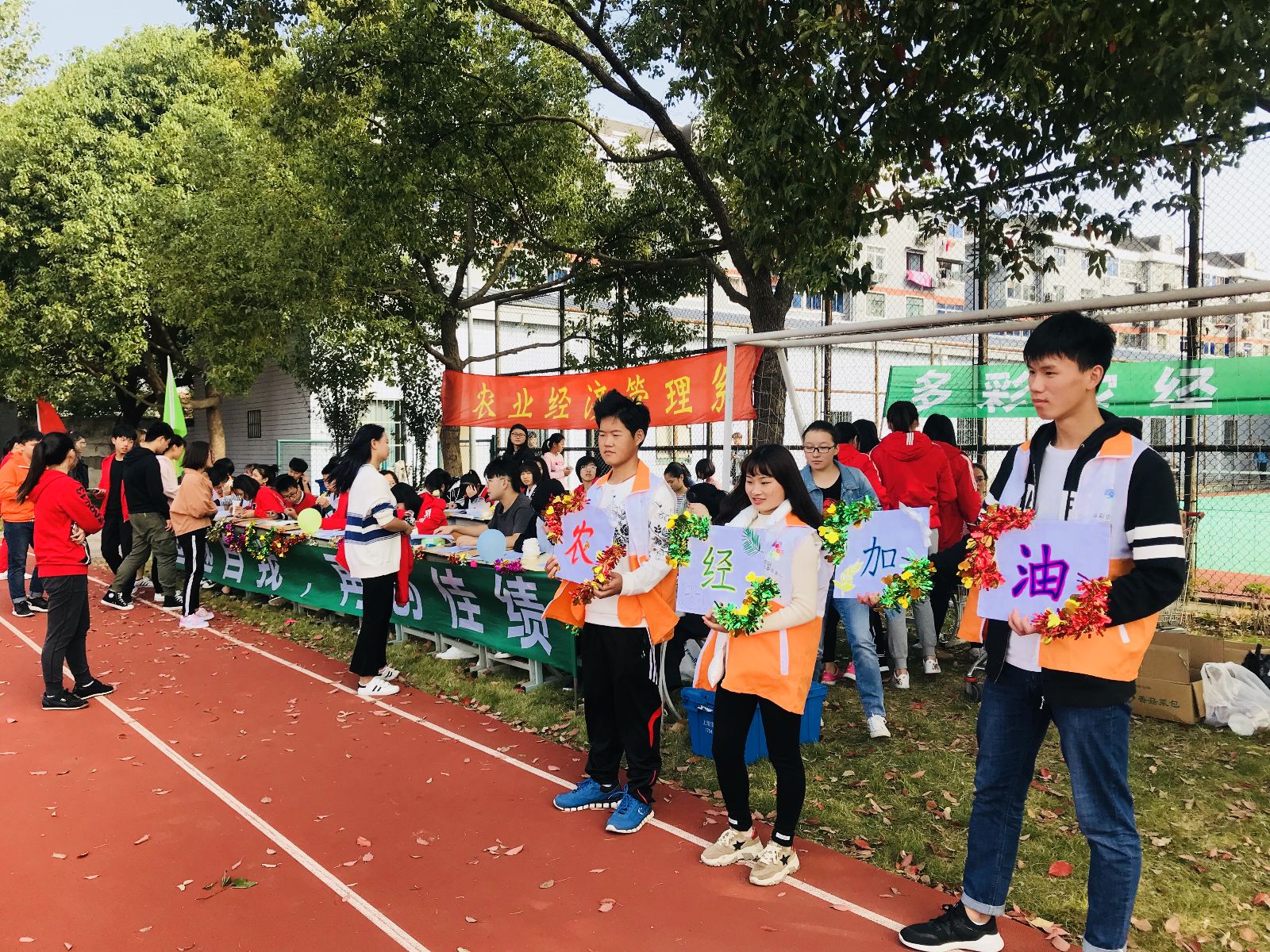 这场一年一度的运动盛会,是同学们展现青春活力,彰显青春激情的舞台。无数的运动健儿们在这个大舞台上展示自己,挥洒汗水,成为校运会赛场上的耀眼明星。本次运动会持续了一天半的时间,设立了100米、200米、400米接力赛、1500米、跳高、跳远、铅球、拔河、舞龙障碍赛等项目。在比赛过程中,我系运动员们顽强拼搏,赛出了成绩,比出了风格。啦啦队助威的呐喊声,运动员得胜的欢呼声,不断地在校园上空响起。比赛期间,我系志愿者默默地穿行于人群中,急同学所急,想同学所想。以自己最饱满的热情服务于全系师生。大声地为体育健儿们加油喝彩,快速地跑到终点线旁迎接完赛的同学,热情地为运动员们端水提衣物,在赛毕默默地拿起扫帚打扫垃圾杂物。他们没有怨言,默默奉献着,不需要赞美,只因,他们身上肩负着属于志愿者沉甸甸的责任。体现了农经系师生积极进取、和谐的风貌。